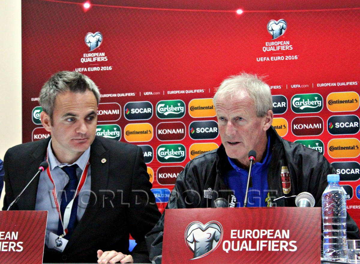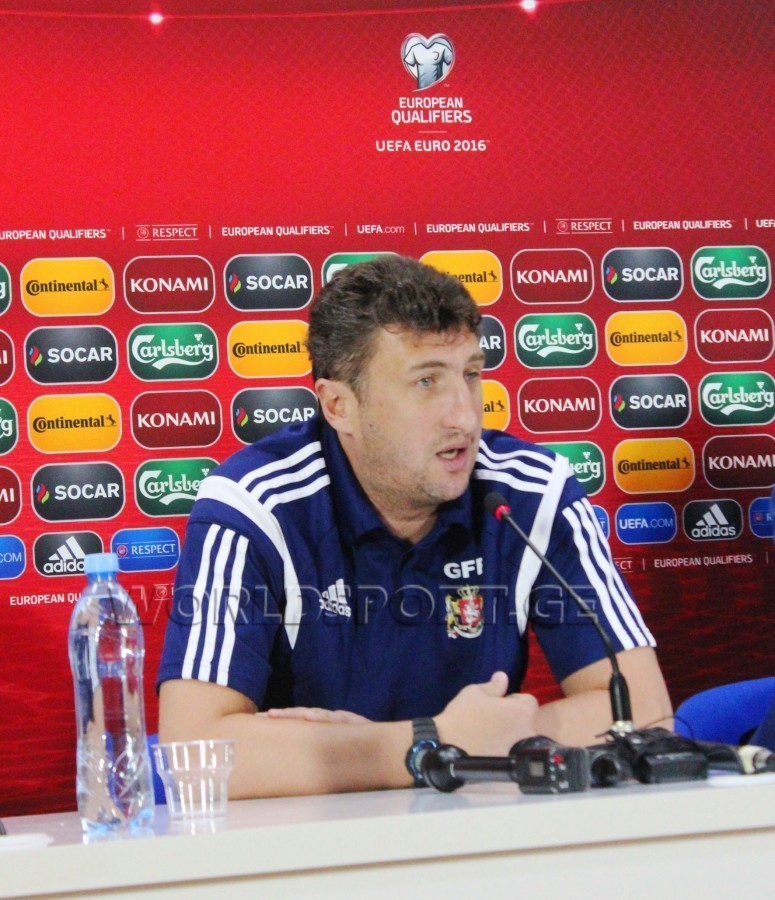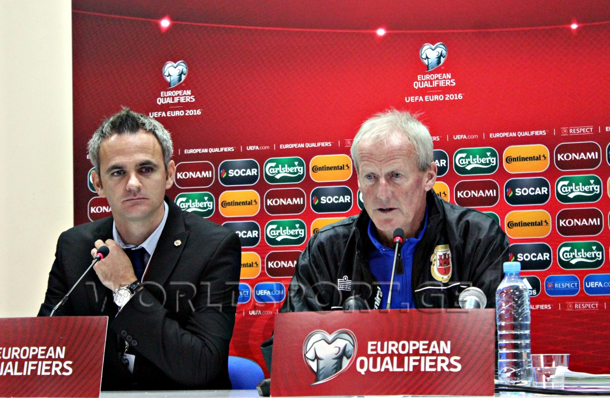 The Georgian national football team beat Gibraltar 4:0 and earned 9 points in Euro 2016 qualifying round. Head coaches of the both teams showed up at the post-match press conference.