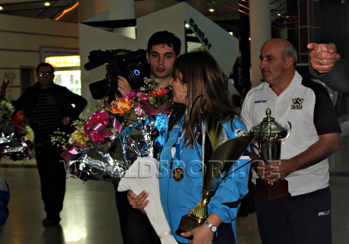 Chess club “Nona”, the winner of European Club Cup 2015, returned from Skopje. Fans, family members and journalists met the Georgian chess players at the airport.
