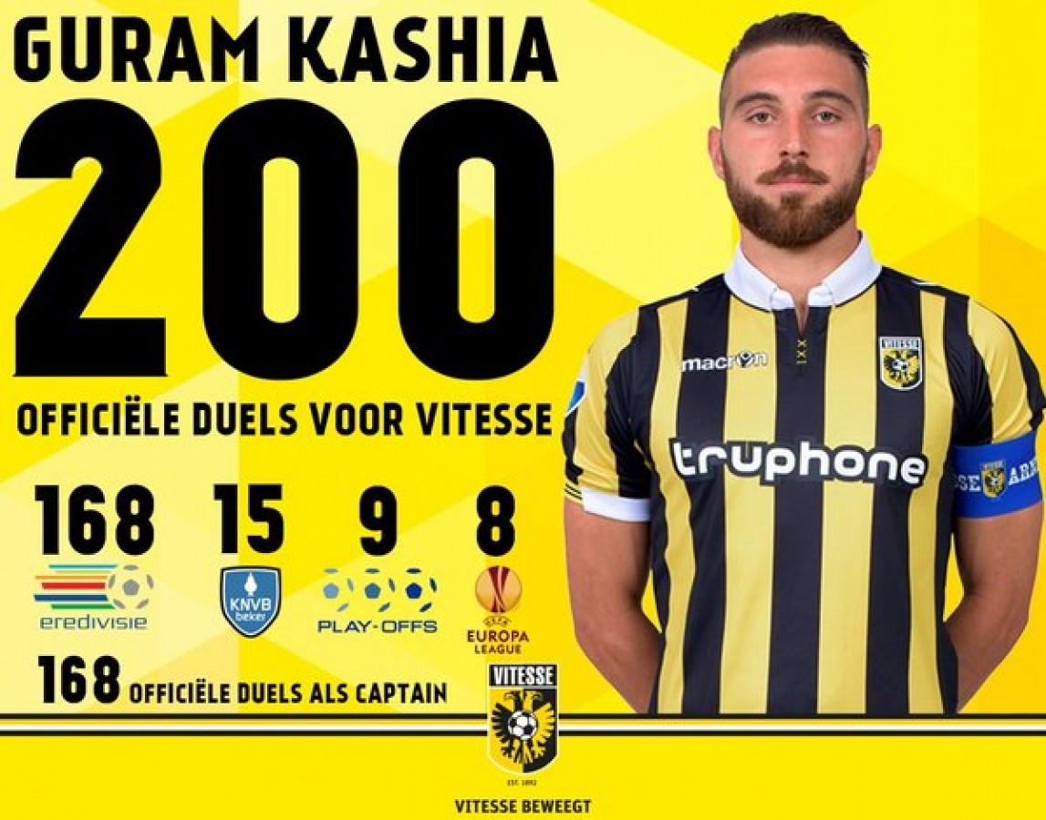 Guram held the 200th match in “Vitesse”. The 28-year-old Georgian held 168 matches in Eredivisie, 15 at Dutch Cup, 9 in Eredivisie play-offs, 8 at Europa League. Kashia captained “Vitesse” 168 times.