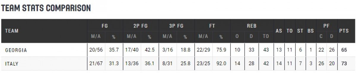 The Georgian national basketball team lost to Italy 65:73 in the last game of Acropolis Cup.