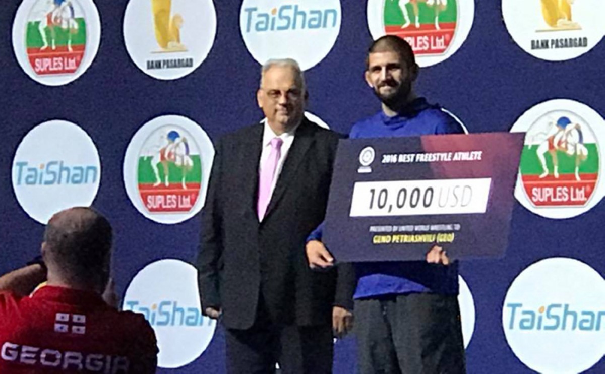 According to the official website of the Georgian Wrestling Federation, Petriashvili was awarded 10 000 USD by FILA president Nenad Lalovic on the last day of World Championship in Paris.