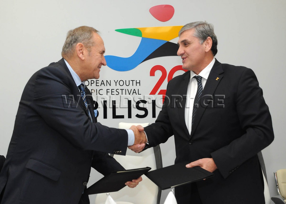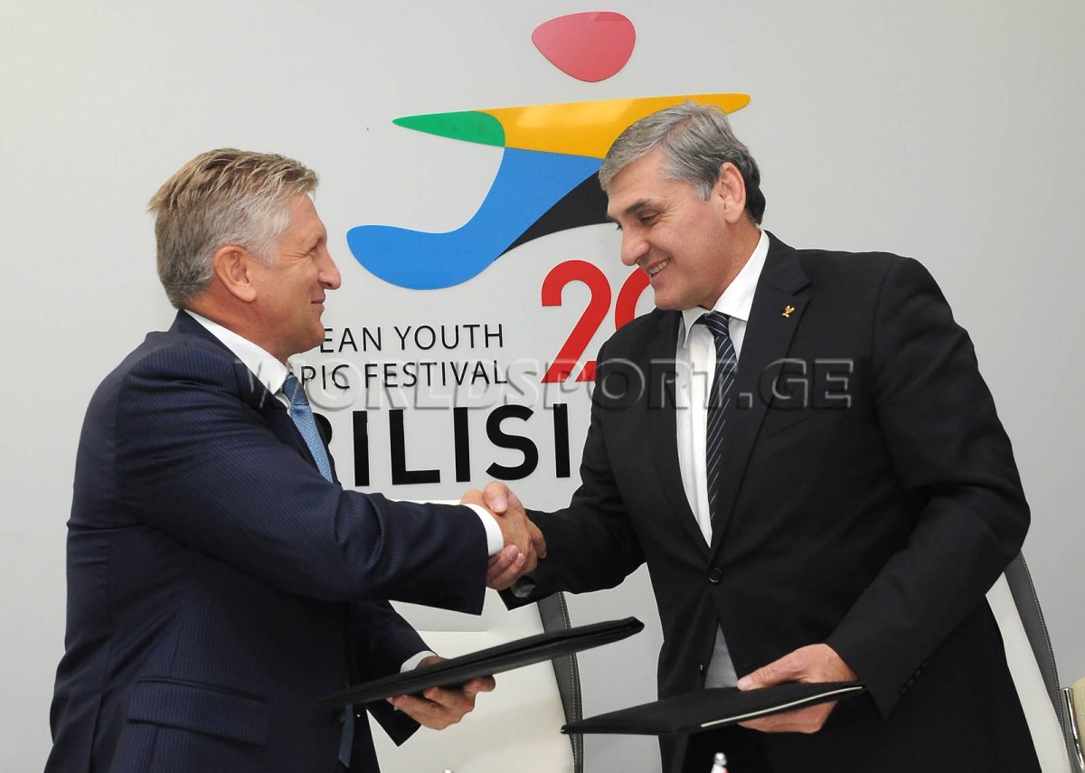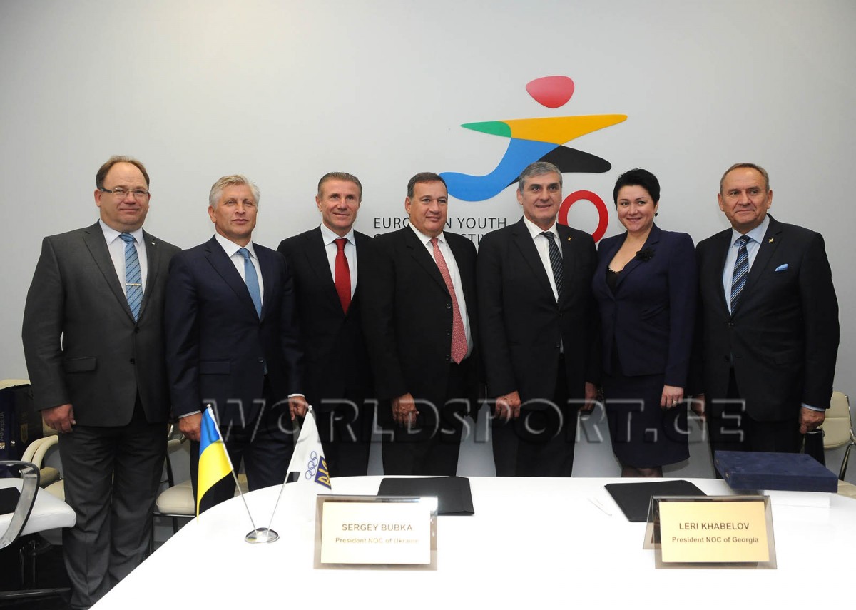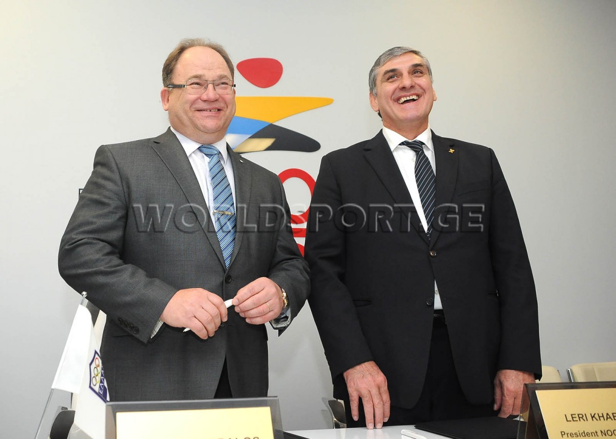 The events dedicated to the 25th anniversary of the GNOC are under way. After the meeting of PM Irakli Garibashvili and IOC president Thomas Bach with foreign guests, the GNOC president Leri Khabelov signed a cooperation agreement with the NOC presidents of 7 countries, Estonia, Lithuania, Moldova, Poland, Greece, Ukraine and Kyrgyzstan.