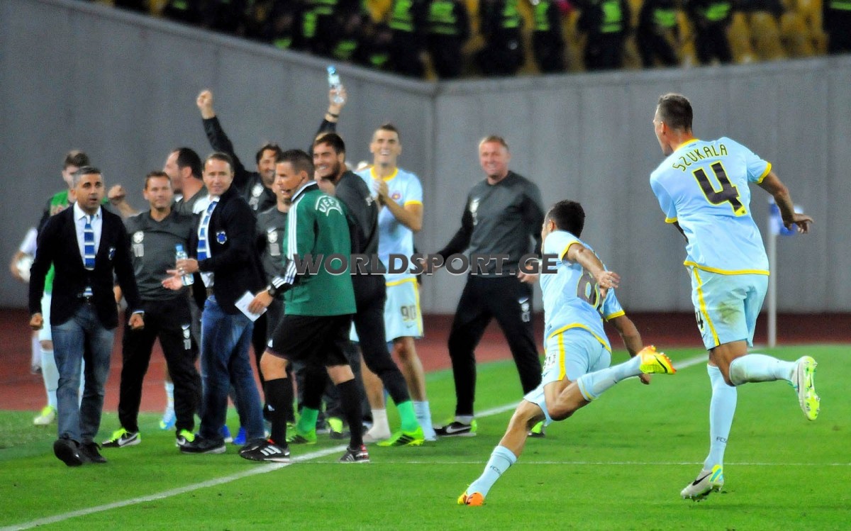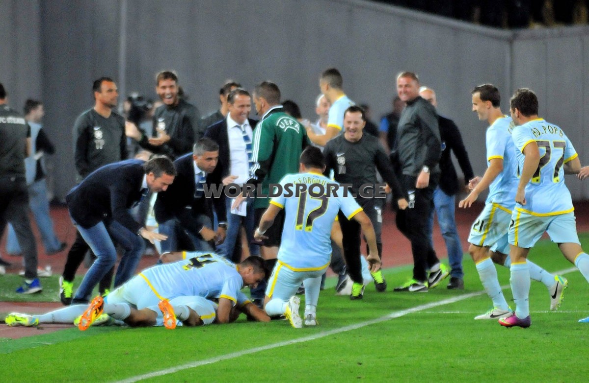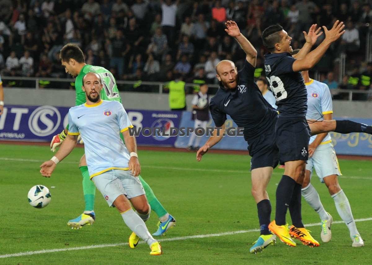 At the 26th minute Stefan Nikolic assisted Tanase who kicked the ball but Giorgi Loria parried it. At the 28th minute Jaba Dvali assisted Giorgi Merebashvili whose shot was parried by Ciprian Tatarusanu. Grigalashvili was the best from “Dinamo” in the first half. At the 30th minute Giorgi Seturidze kicked the ball in penalty area of “Steaua” but Levan Khmaladze could not score goal by head.
