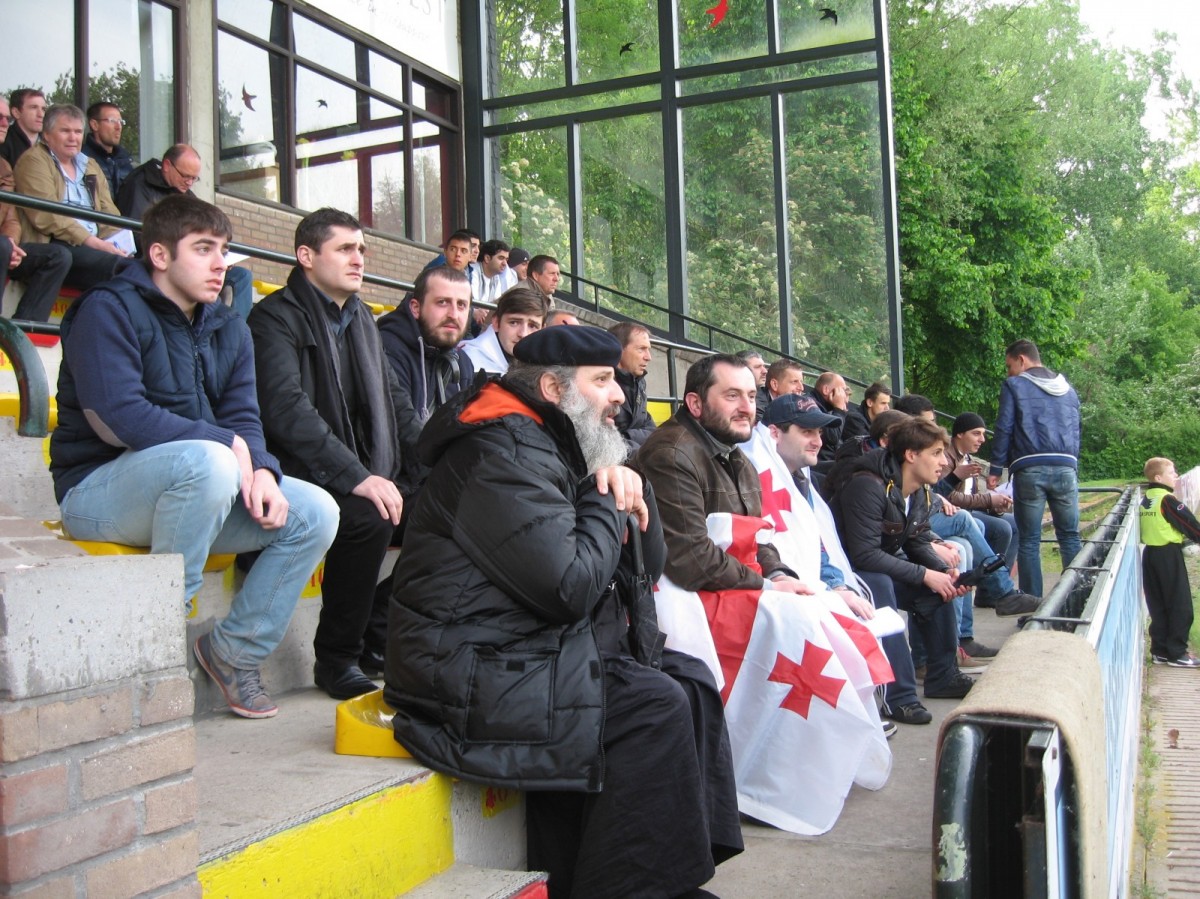 On May 24 in the evening in Borneme, 35 km from Antwerp, was a true gathering of Georgians living in Belgium. The stadium is located in the forest from 200 to 250 gathered Georgians who, despite the rainy and cool weather have arrived from different cities of Belgium to support the football team of Georgia U-19 in Elite Raund Under-21 match. They were actively rooting for fellow-chanting, shouting into a megaphone, waving flags of Georgia.