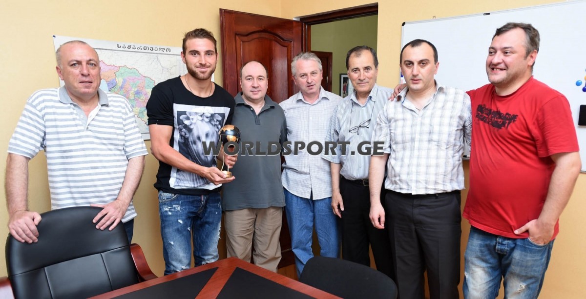“World Sport” rewarded Guram Kashia – as the best Georgian football player of 2013 by the poll of our website’s users. This poll was completed in late January, but of course, we had to reward the prize personally to Kashia. In March, before the match against Liechtenstein, it failed because there was no time. The team was preparing for the match. Now, Kashia is in Tbilisi on holidays and the rewarding took place.