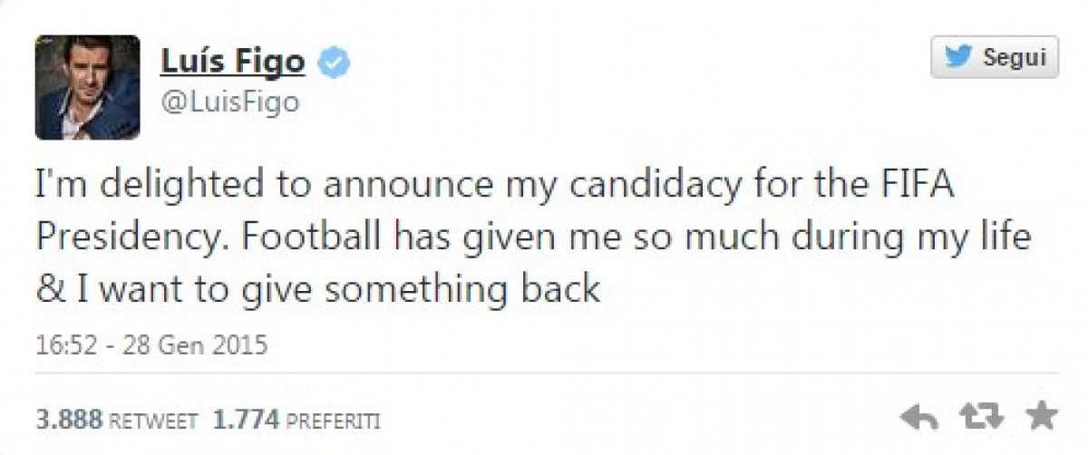 ლუიშ ფიგუს გარდა, ფიფას პრეზიდენტობისთვის ორგანიზაციის ამჟამინდელი თავკაცი იოზეფ ბლატერი, ცნობილი ფრანგი ფეხბურთელი დავიდ ჟინოლა, ჟერომ შამპანი, ალი ბინ ალ-ჰუსეინი და ჰოლანდიის ფეხბურთის ფედერაციის პრეზიდენტი მიხაელ ვან პრააგი იბრძოლებენ. კანდიდატურების წარდგენის საბოლოო ვადა 29 იანვარს იწურება.