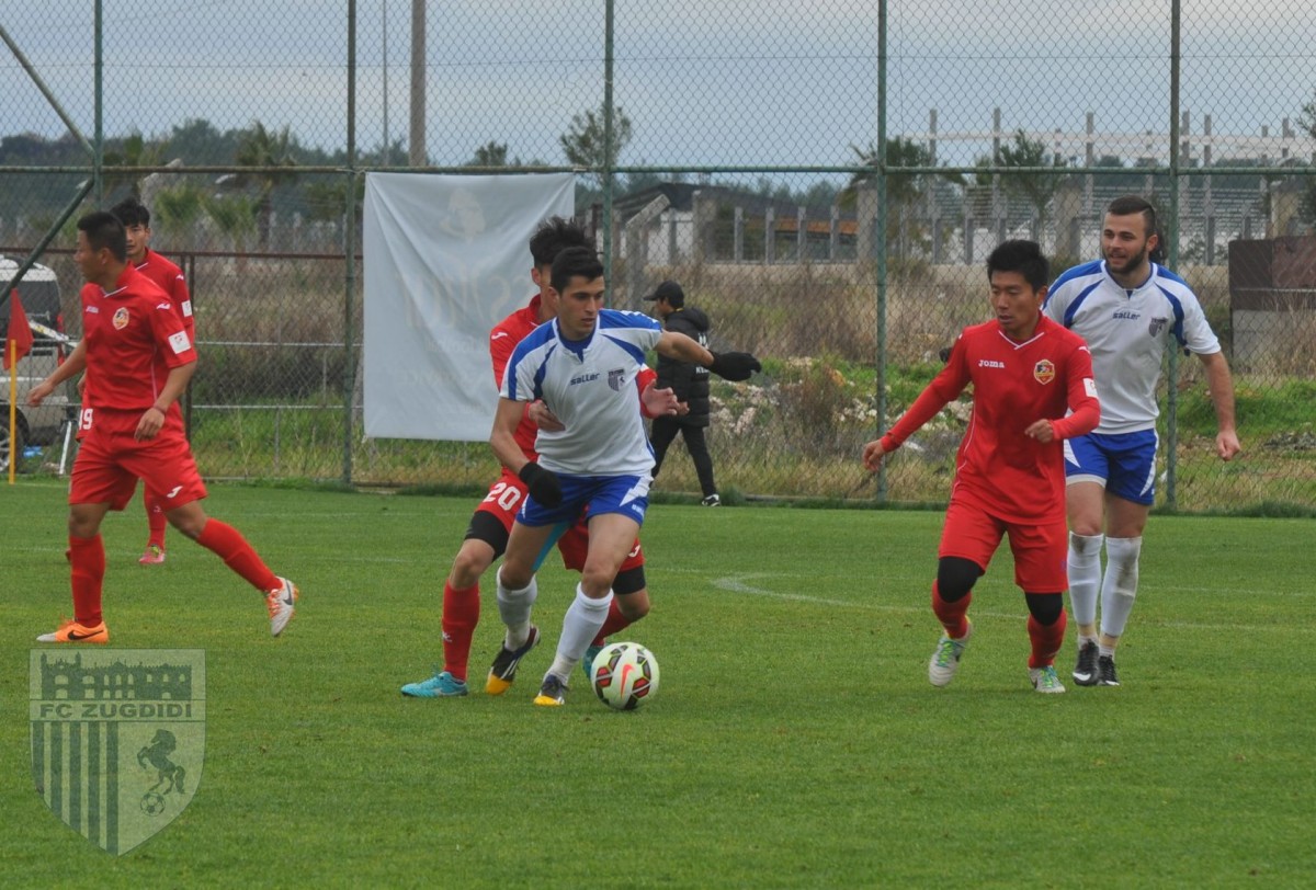 როგორც “ზუგდიდის” ოფიციალური ვებგვერდი იუწყება, გუნდმა თურქულ შეკრებაზე ბოლო ამხანაგური მატჩი ჩინური “ჰუნან ხიანგტაოს” წინააღმდეგ გამართა და 2:0 იმარჯვა. პირველ ტაიმში ანგარიშის გახსნის შანსი ლუკა გუგუჩიას და ირაკლი ქობალიას ჰქონდათ, ხოლო ლევან კუტალიას დარტყმული ერთ-ერთ მცველს მოხვდა და ვითარება განიმუხტა. ერთ-ერთი შეტევის დროს მეგრელებმა სტანდარტული დარტყმის შესრულების უფლება მოიპოვეს, შოთა ლომიას შესრულებულ სტანდარტს გიორგი პაჭკორია გამოეხმაურა და თავური დარტყმით ბურთი ცხრიანში გაახვია.