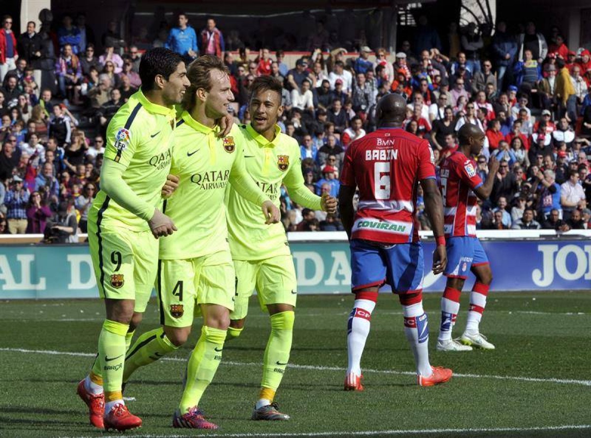 დაგეგმილი სამი ქულა მოიპოვა “ბარსელონამ”, რომელმაც გასვლაზე მარტივად მოუგო “გრანადას”. სტუმრები თავიდანვე დიდ უპირატესობას დაეუფლნენ და გოლი გატანის პირველი შანსი ხავი ერნანდესს ჰქონდა, მაგრამ ოლასაბალი კარგად გაისარჯა. შემდეგი სახიფათო ეპიზოდი კი, გატანილი გოლით დასრულდა. ხორდი ალბას შესანიშნავი გადაცემის შემდეგ ლუის სუარესი დასარტყმელ პოზიციაზე გავიდა, მაინცდამაინც კარგად ვერ ითამაშა, თუმცა გოლი მაინც გავიდა. ურუგვაელი დარტყმა გადადიოდა, თუმცა ხუან კალა ბურთს ძალიან ცუდად დაუხვდა და ივან რაკიტიჩს ცარიელ კარში გაატანინა. ცოტა ხანში გატანა ლიონელ მესის შეეძლო, მაგრამ არგენტინელის გასროლილი ზემოდან გადასცდა მეტოქის კარს. ტაიმის ბოლოს მასპინძლებიც გააქტიურდნენ, მარკ ბარტრას მიერ ფოლქიერის წაქცევის გამო, ანდალუსიელები პენალტს ითხოვდნენ, ხოლო შემდეგ ხავი მარკესი დაემუქრა “ბლაუგრანას” კარს, მაგრამ ბრავომ კარგად ითამაშა და ბურთი კუთხურზე მოიგერია. პირველ ტაიმში ბოლო მომენტი მესის ჰქონდა, მაგრამ ამჯერად ოლაზაბალს ვერ აჯობა.