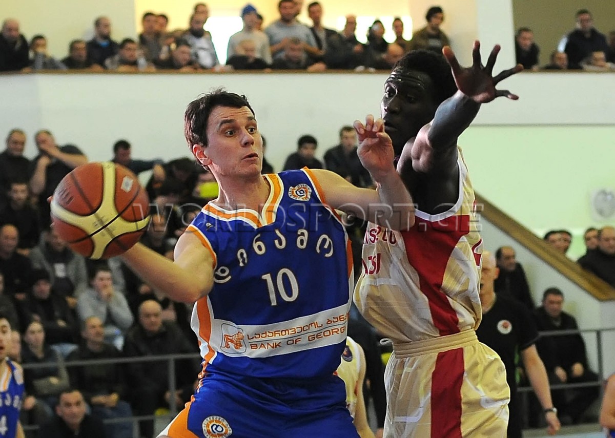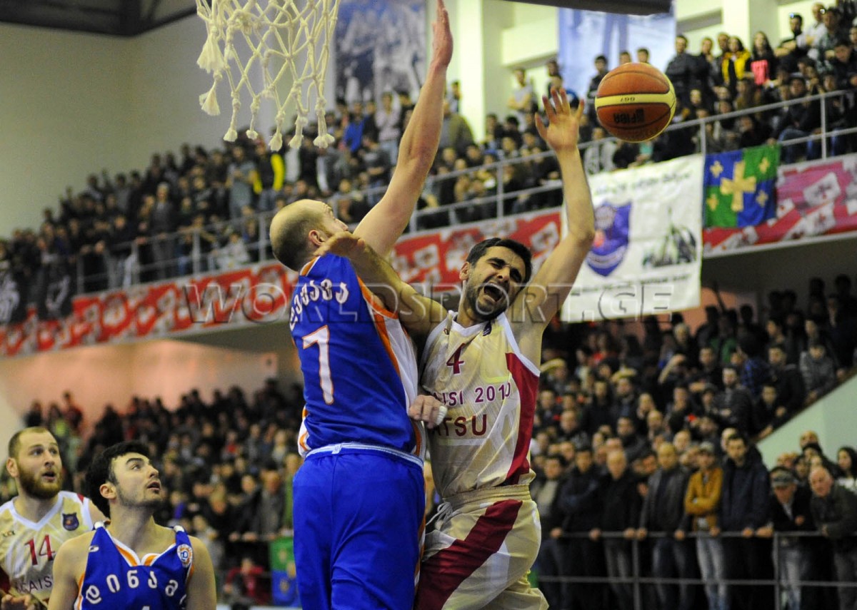 განმეორებით შეხვედრაზე საკალათბურთო დარბაზში თავისუფალი ადგილი არ იყო. აშკარად გამოჩნდა, რომ ქალაქს ტევადობის მიხედვით უფრო დიდი დარბაზი სჭირდება. ძალიან ბევრი ადამიანი თვალს საინტერესო შეხვედრას კიბეებიდან უცქერდა. მატჩი ორივე გუნდმა ძალიან მძიმედ დაიწყო. სამი წუთის განმავლობაში მეტოქეებმა თითოჯერ მოახერხეს ჩაგდება და ტაბლოზე 2:2 იყო ასახული. ნელ-ნელა თამაში ორივე გუნდს აეწყო და სანახაობაც უფრო თვალწარმტაცი გახდა. პირველ პერიოდში გუნდების შედეგიანობა მწირი იყო და იგი 13:16 დასრულდა. მასპინძლებს უმთავრესი იარაღი სამქულიანები არ გამოდიოდათ, მაშინ როცა თბილისელებმა მთელი ეს დრო საშუალო მანძილიდან და ფარქვეშ თამაშზე ააგეს. მათ მხოლოდ ორჯერ ისროლეს პერიმეტრიდან და ორივეჯერ უწიეს მიზანს.
