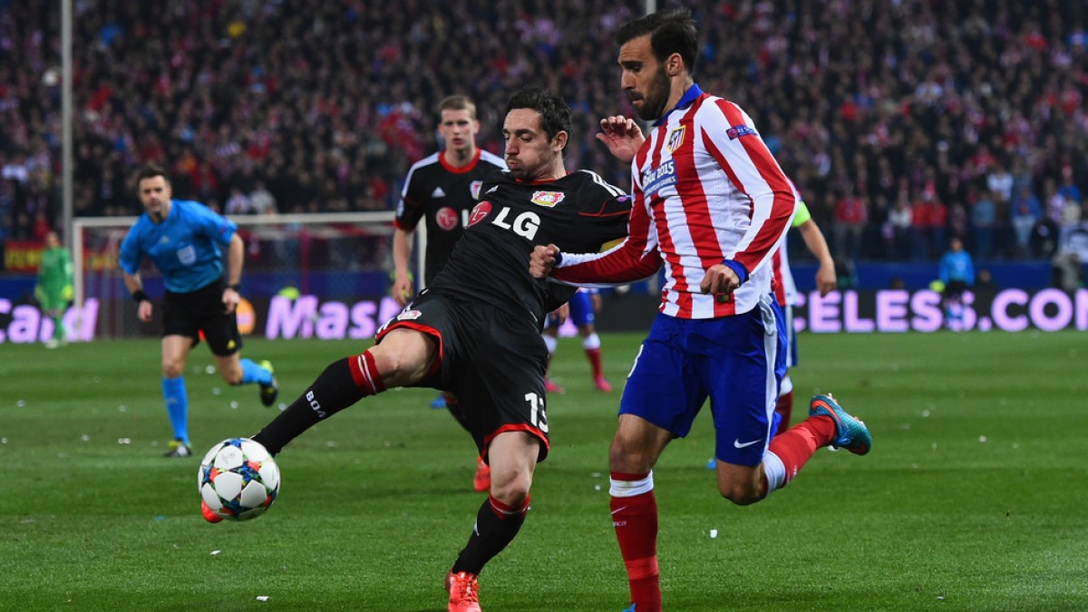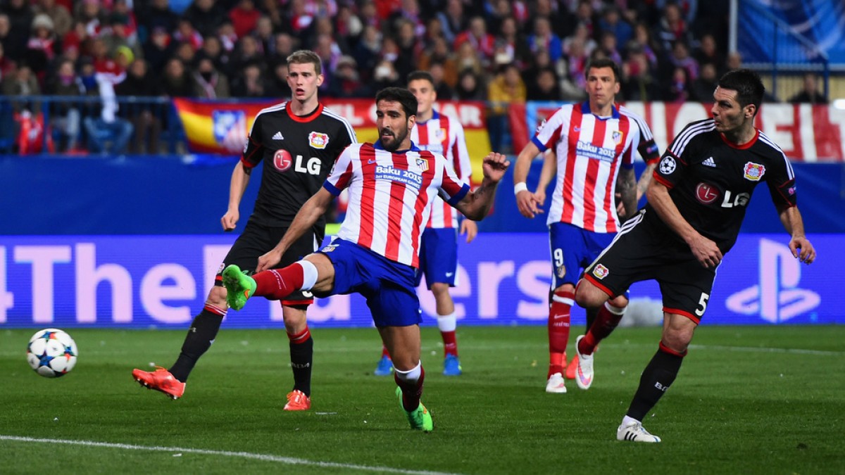 „ატლეტიკოსა“ და „ლევერკუზენის“ პირველი დაპირისპირება გერმანელებს 1:0 ჰქონდათ მოგებული. მადრიდულმა გუნდმა ეს ჩამორჩენა „ვისენტე კალდერონზე“ გამართული თამაშის პირველივე ტაიმში აღმოფხვრა. 27-ე წუთზე, მარიო სუარესმა საჯარიმოს გარედან დაარტყა, რასაც რიკოშეტი და გოლი მოჰყვა.