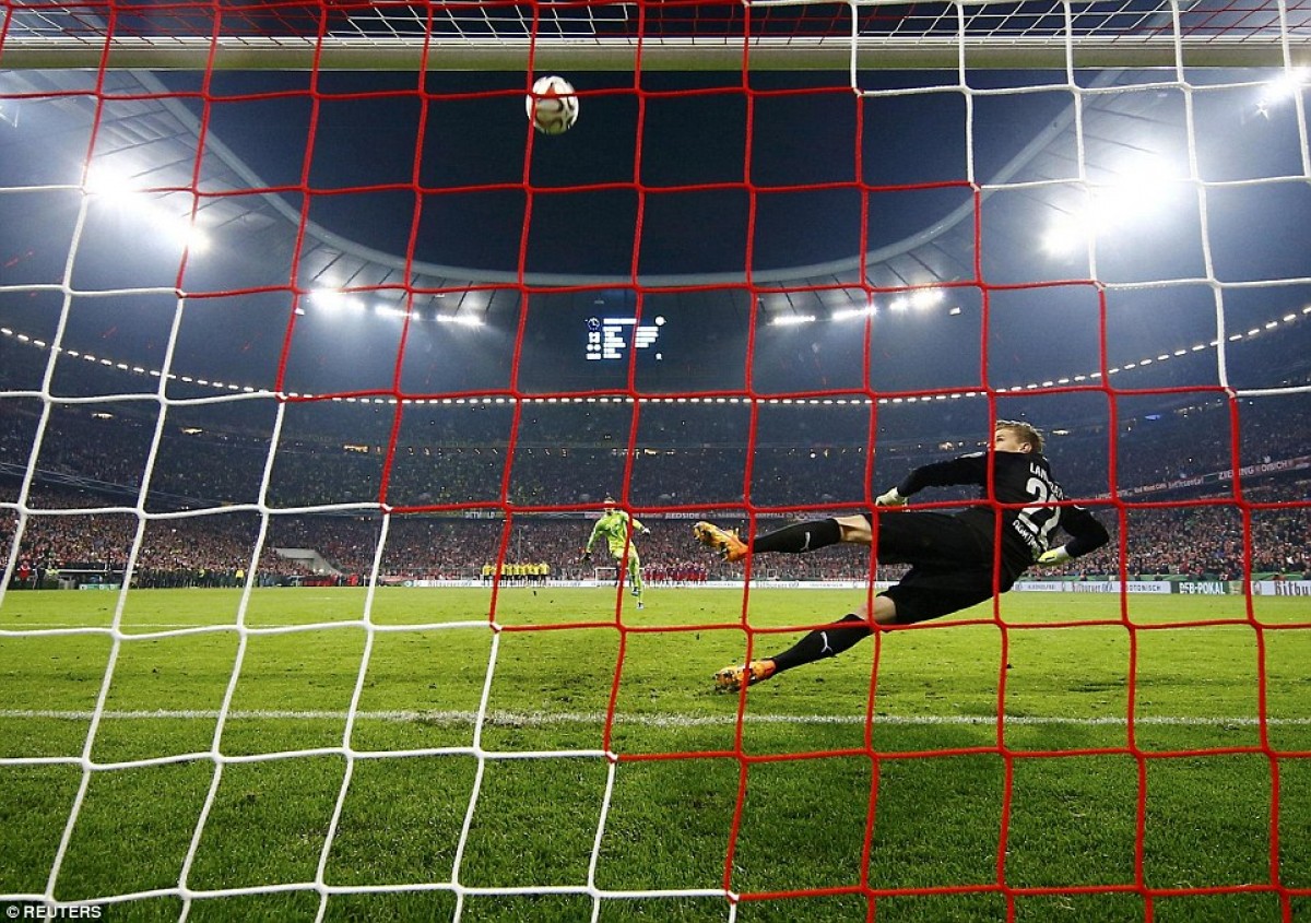 შეხვედრა თერთმეტმეტრიანების სერიამდე მივიდა, რომელშიც იღბალი იურგენ კლოპის შეგირდებს უფრო აღმოაჩნდათ. “ბაიერნმა” ვერცერთი პენალტი გამოიყენა. ფილიპ ლამმა, ჩაბი ალონსომ, მარიო გიოტცემ და მანუელ ნოიერმა მიზანს ვერ მიაღწიეს. “დორტმუნდიდან” პენალტი მატს ჰუმელსმა ვერ გამოიყენა, ილქაი გიუნდოგანმა და სებასტიან კელმა კი დარტყმები ზუსტად შეასრულეს და “ბორუსია” ფინალში გაიყვანეს.