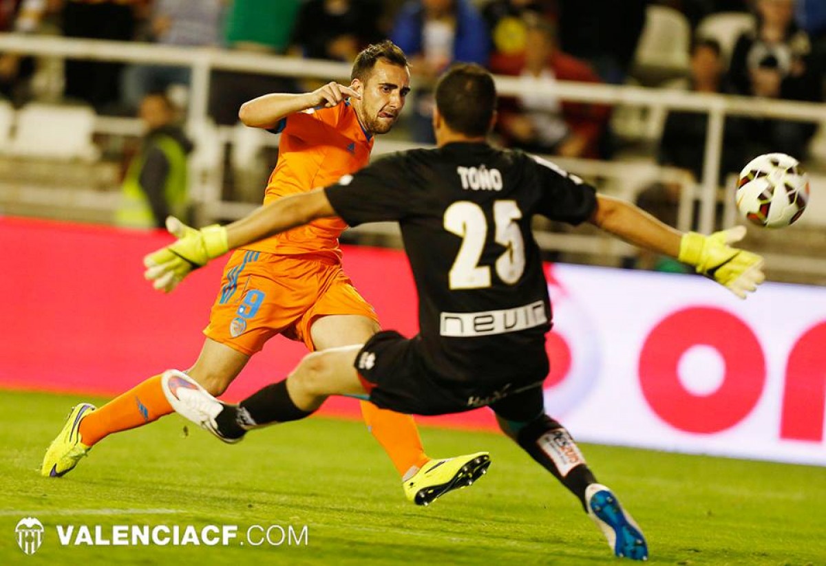 პირველი ნახევარი სტუმართა უპირატესობით წარიმართა. დანიელ პარეხოს, ალვარო ნეგრედოს, ანდრე გომეშსა და როდრიგო მორენოს გოლის გატანის რამდენიმე კარგი შესაძლებლობა ჰქონდათ, თუმცა ან ტონიო თამაშობდა კარგად, ანაც “ღამურები” სცოდავდნენ დამაგვირგვინებელ ფაზაში. სამაგიეროდ, კურიოზული გოლი გავიდა “ვალენსიას” კარში. მე-19 წუთზე ემბარბამ შორი მანძილიდან სუსტად დაარტყა, დიეგო ალვეში ბურთს ხელებში იჭერდა, თუმცა ბრაზილიელმა მეკარემ მზის გადამკიდე ბურთი ვერ დაინახა და ბურთი მისი კარის ბადეში აღმოჩნდა.