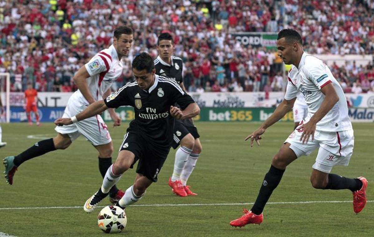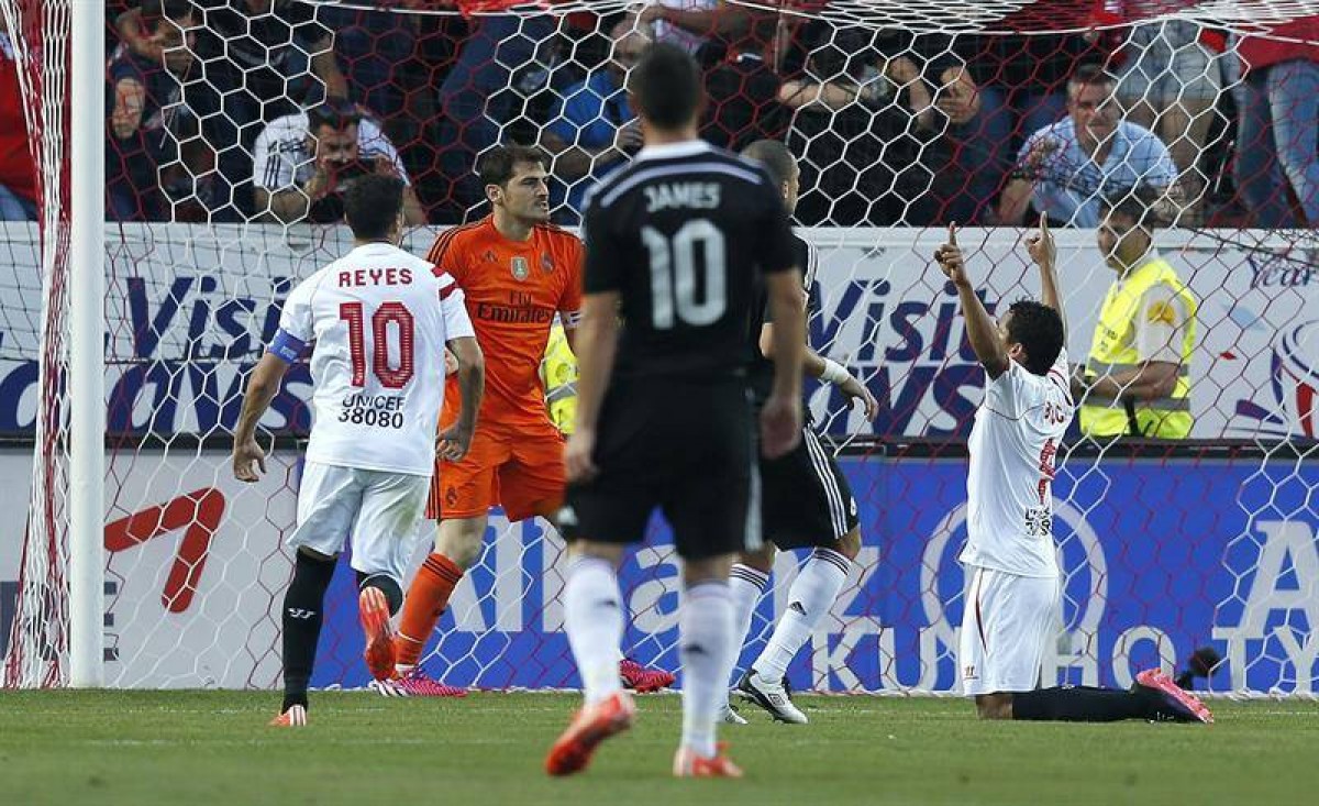 ტურის ცენტრალური შეხვედრა კი “რამოს სანჩეს პისხუანზე” ჩატარდა, სადაც ჩემპიონთა ლიგის საგზურითვის მებრძოლმა “სევილიამ” მე-2 ადგილოსანი მადრიდის “რეალი” მიიღო და 2014 წლის თებერვალის შემდეგ შინ პირველად დამარცხდა. სტუმრებს პირველი შანსი მე-9 წუთზე ჰქონდათ, მაგრამ რონალდუს რიკომ აჯობა. მე-14 წუთზე უკვე ალექს ვიდალს ჰქონდა სახიფათო მომენტი, თუმცა მცველებმა განმუხტეს სიტუაცია. ანგარიში 36-ე წუთზე გაიხსნა, ისკომ მარცხენა ფლანგზე შესანიშნავად ითამაშა და რონალდუს თავზე დაასვა ბურთი, რომელმაც შანსი აღარ გაუშვა. ერთ წუთში სტუმრებმა მეორე გაიტანეს, ხავიერ ერნანდესმა კარგი პასი გააკეთა თავით, რონალდუმ რიკოს დაასწრო და სხვაობა გაიზარდა. მასპინძლებმა ყურები არ ჩამოყარეს და ტაიმის ბოლო წუთზე პენალტის დარტყმის უფლება მოიპოვეს – ალექს ვიდალი მარჯვენა ფლანგიდან შეიჭრა საჯარიმოში, რომელიც სერხიო რამოსმა წესების დარღვევით შეაჩერა. 11-მეტრიანი კარლოს ბაკამ ზუსტად შეასრულა და ტაიმი 1:2 დასრულდა.