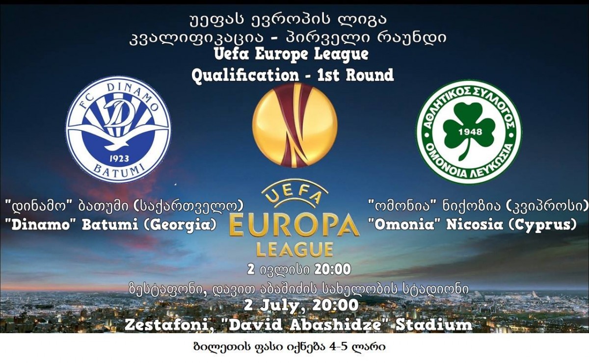 უეფას ევროპა ლიგის პირველ საკვალიფიკაციო ეტაპზე ბათუმის “დინამოსა” და კვიპროსის “ომონიას” შორის გასამართ მატჩზე დასასწრები ბილეთები 4 და 5 ლარი ეღირება.
