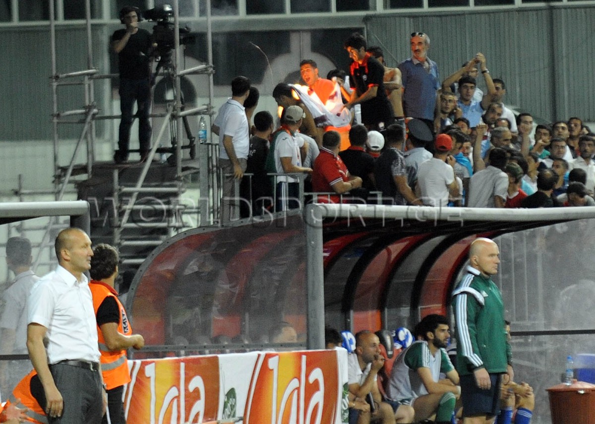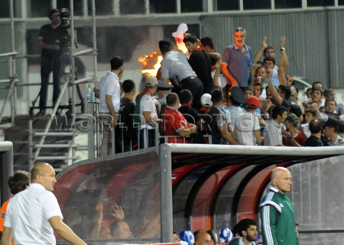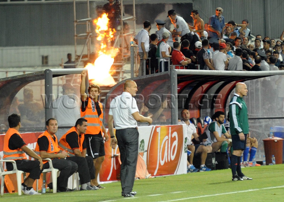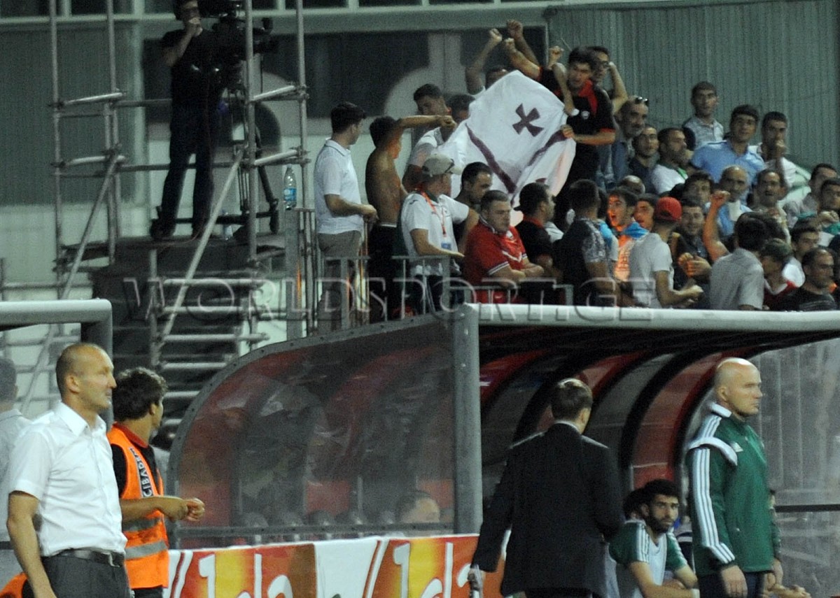თამაშის მიმდინარეობისას ადგილობრივმა გულშემატკივრებმა ბანერები გამოფინეს, რასაც საქართველოს დროშის დაწვა მოჰყვა.