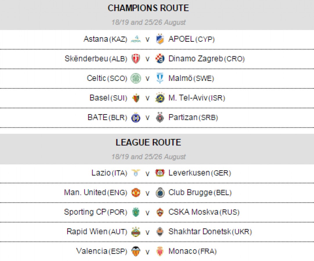 შვეიცარიის ქალაქ ნიონში უეფას ჩემპიონთა ლიგის პლეიოფის კენჭისყრა გაიმართა. ქვეყნის ჩემპიონის რანგში მოთამაშე გუნდები ცალკე დაწყვილდნენ, ხოლო ჩემპიონთა ლიგის საგზურის მფლობელები – ცალკე.