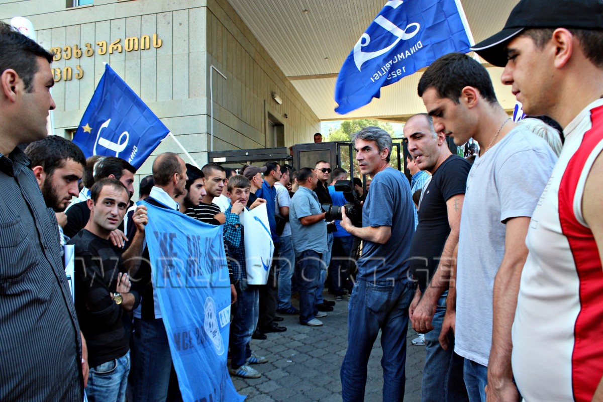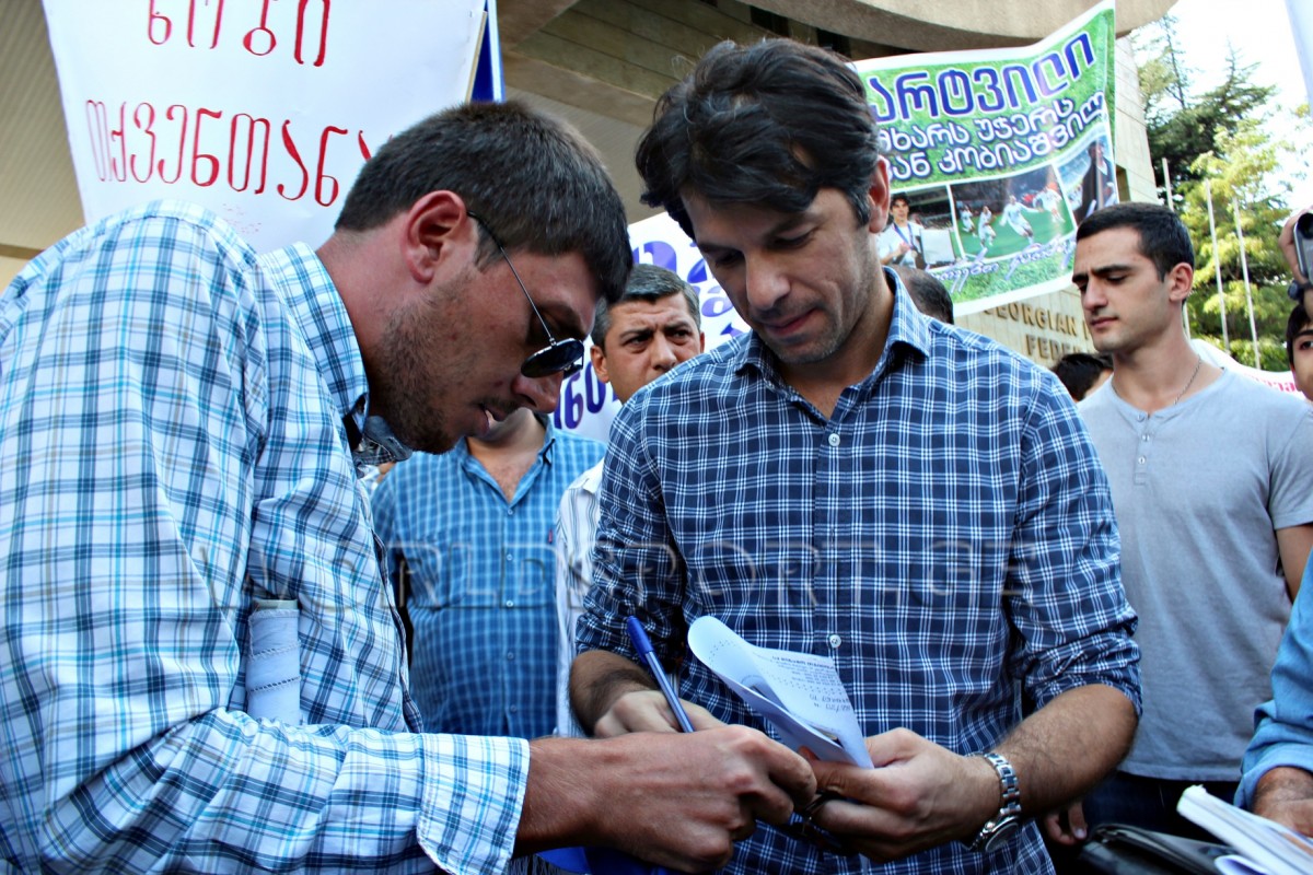 კობიაშვილის ფეხბურთის ფედერაციაში 14:00 საათზე მივიდა, ხოლო ერთი საათით ადრე ხსენებული ორიგანიზაციის შენობასთან მისი მხარდამჭერები შეიკრიბნენ. ნაწილი თბილისის “დინამოს” ავტობუსით მოვიდნენ და ხელში ამ კლუბის ლოგოიანი დროშები ეკავათ. ზუგდიდელი გულშემატკივრებს ავტობუსზე პლაკატი გამოეკრათ: “ზუგდიდი მხარს უჭერს ლევან კობიაშვილს”.