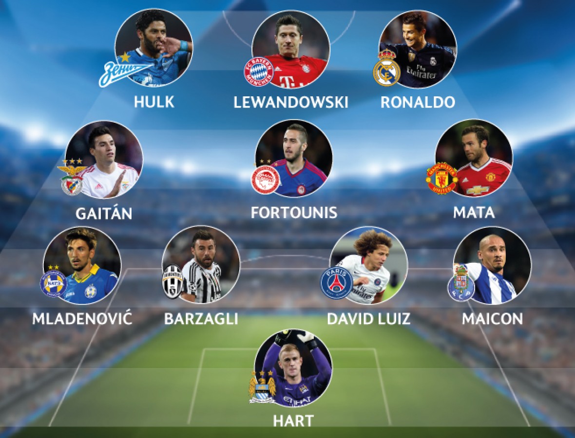 უეფას ოფიციალურმა ვებგვერდმა ჩემპიონთა ლიგის მიმდინარე გათამაშების მეორე ტურის სიმბოლური ნაკრები დაასახელა. საუკეთესო 11 ფეხბურთელს შორის კრიშტიანუ რონალდუ, ხუან მატა, რობერტ ლევანდოვსკი და ფილიპ მლადენოვიჩი მოხვდნენ.