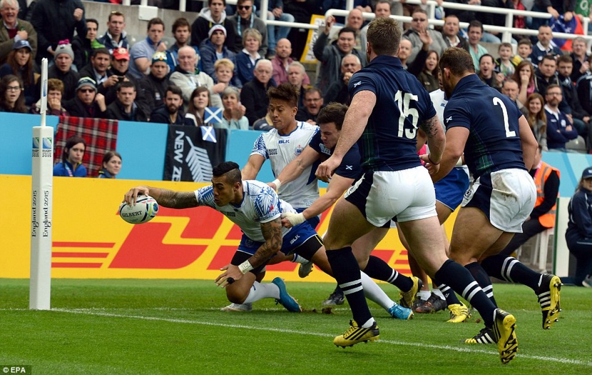 სამოას ნაკრებმა მაგრად მოინდომა და შოტლანდიას უამრავი პრობლემა შეუქმნა, მეტოქეს სამ ლელოს ოთხით უპასუხა, მაგრამ დისციპლინამ ის და იაპონია დააღალატა და 33:36 მარცხით თავად მხოლოდ 2 ქულას დასჯერდა, ხოლო შოტლანდიამ ჯგუფში მეორე ადგილი დაიბევა და ხვალ იაპონიისა და აშშ-ს ჯახმა აზრი დაკარგა.