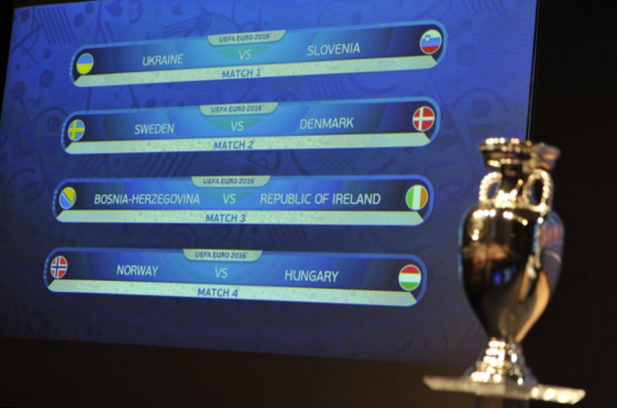 შვეიცარიის ქალაქ ნიონში 2015 წლის ვეროპის ჩემპიონატის საკვალიფიკაციო ეტაპის პლეი-ოფის კენჭისყრა გაიმართა. საფრანგეთში გასამართ ტურნირზე დარჩენილი ოთხი ეროვნული ნაკრების ვინაობა შემდეგ წყვილებში გაირკვევა:
