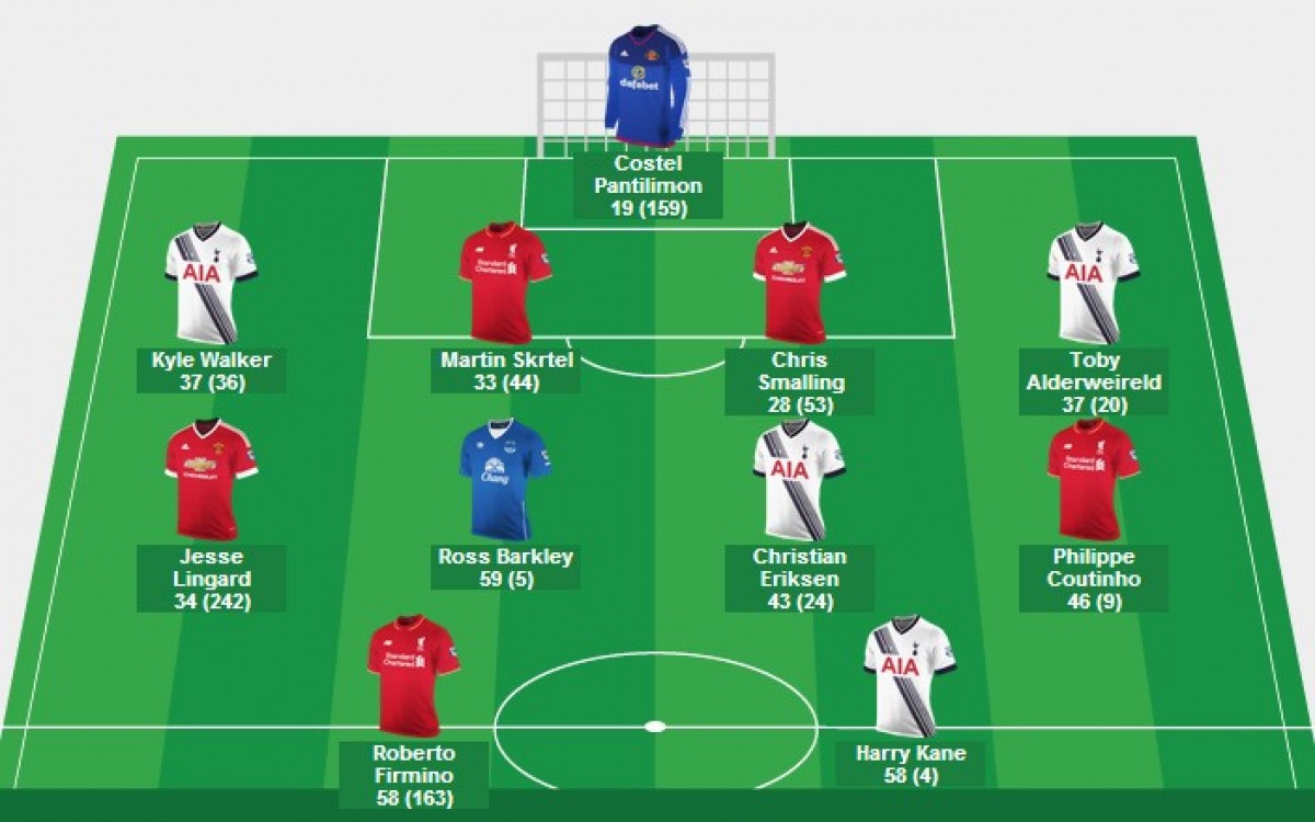 კვირის საუკეთესო თერთმეტეულში ყველაზე მეტი, ოთხი მოთამაშე “ტოტენჰემიდანაა”, რომელმაც “უაით ჰართ ლეინზე” გამართულ ლონდონურ დერბიში “ვესტ ჰემი” გაანადგურა (4:1).