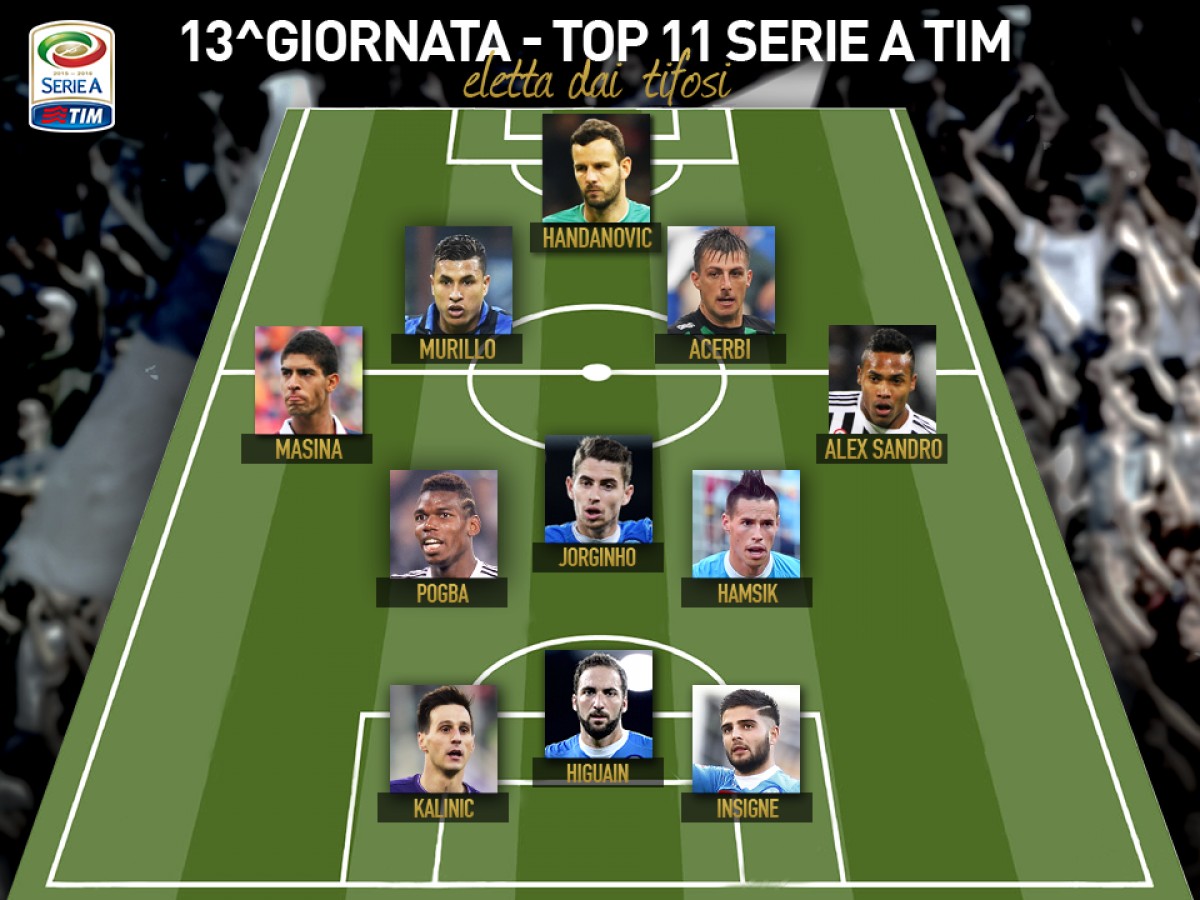 იტალიის სერია A-ს ვებგვერდმა გულშემატკივართა გამოკითხვით XIII ტურის სიმბოლური ნაკრები შეადგინა. აღნიშნულ თერთმეტეულში ყველაზე მეტი, ოთხი წარმომადგენელი “ნაპოლის” ჰყავს, ხოლო “ინტერი” და “იუვენტუსი” ორ-ორი მოთამაშით არიან წარმოდგენილნი.