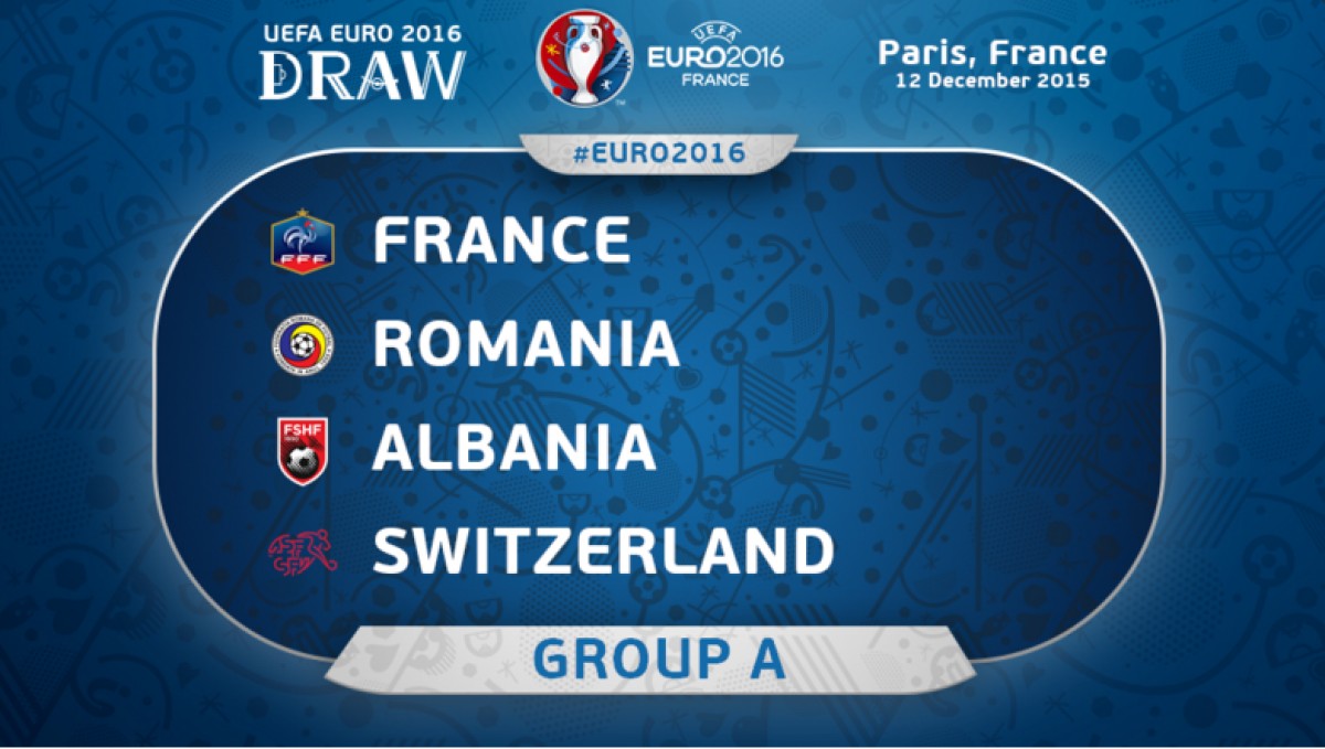 საფრანგეთის დედაქალაქ პარიზში ევროპის 2016 წლის ჩემპიონატის ფინალური ეტაპის კენჭისყრა გაიმართა. 24 გუნდი 6 ჯგუფში შემდეგნაირად გადანაწილდა: