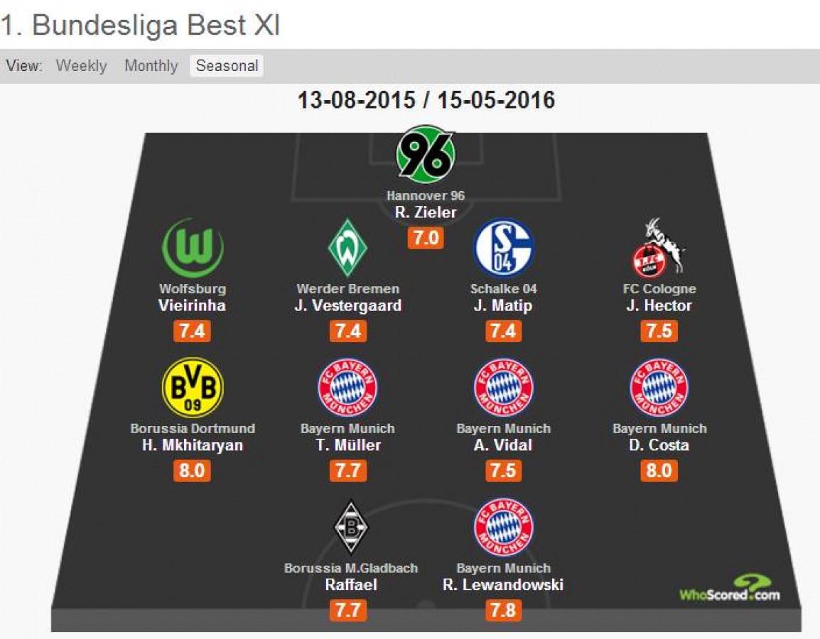 ნახევარმცველები: ვიდალი, მიულერი, დუგლას კოშტა (ყველა – ბაიერნი), მხითარიანი (დორტმუნდი)