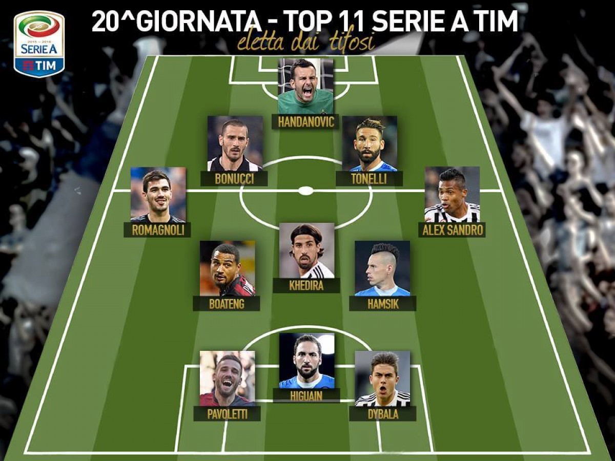 იტალიის სერია A-ს ვებგვერდმა გულშემატკივართა გამოკითხვით შედგენილი XX ტურის სიმბოლური ნაკრები თავის ფეისბუქგვერდზე გამოაქვეყნა. მეორე წრის პირველი ტურის საუკეთესო 11-ეულში ყველაზე მეტი, 4 წარმომადგენელი ტურინის “იუვენტუსს” ჰყავს, რომელმაც სტუმრად “უდინეზე” 4:0 გაანადგურა და ყველა გოლის ავტორი ტურის სიმბოლურში მოხვდა – პაულო დიბალა (დუბლი, 2 საგოლე პასი), სამი ხედირა (გოლი) და ალექს სანდრო (გოლი).