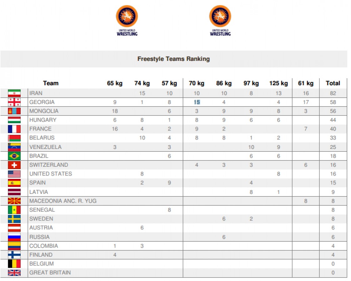 ფარტენაძემ (61) ფინალამდე შვეიცარიელი ანდრიან ვოკი 10:0 და მაკედონიელი ადილ ადილი 12:2 დაამარცხა ფინალში კი დაძაბურ ბრძოლაში ირანელების მსოფლიოს ჩემპიონ ჰასან რაჰიმისთან 1:5 წააგო. ამავე წონაში რევაზიშვილმა ფრანგი ადამ სოუ 14:2 დაამარცხა, ნახევარფინალში კი რაჰიმისთან წააგო – 0:10. ბრინჯაოსთვის შეხვედრაში, გიორგიმ ირანელ მოხტან სადეგიკოუკანდეს მოუგო – 15:6.