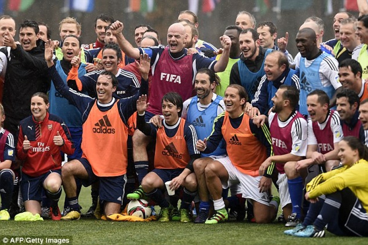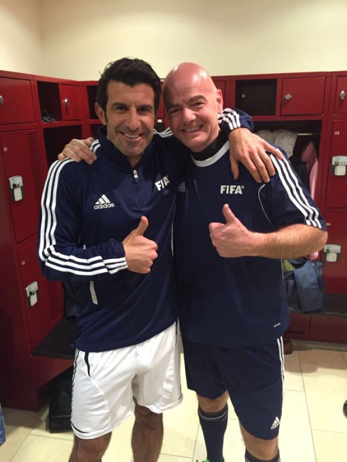 ფიფას ახალმა პრეზიდენტმა ჯანი ინფანტინომ ამ თანამდებობაზე მისი პირველი სამუშაო დღე ვარსკვლავებთან მატჩით დაიწყო. მსოფლიო ფეხბურთის მმართველმა ციურიხის ერთ ერთ სტადიონზე ფეხბურთი ლუის ფიგუსთან, ფაბიო კანავაროსთან, ანდრეი შევჩენკოსთან, პაოლო მალდინისთან, კლარენს ზეედორფთან, მიჩელ სალგადოსთან, დეკუსთან, დემეტრიო ალბერტინისთან და უახლოესი წარსულის სხვა ვარსკვლავებთან ერთად ითამაშა. შეხვედრაში მონაწილეობა მიიღო ქალთა ფეხბურთის ორმა წარმომადგენელმაც, მოქმედმა ფეხბურთელებმა კელი სმიტმა “არსენალიდან” და ჯულია სიმიჩმა “ვოლფსბურგიდან”. ინფანტინოს გუნდის მწვრთნელის ფუნქციას ფაბიო კაპელო ასრულებდა.