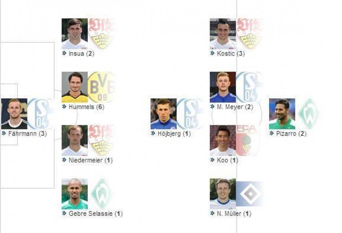 ნახევარმცველები: მაქს მეიერი, პიერ ჰიობერგი (ორივე ”შალკე”), ჟა ჩეოლ კუ (“აუგსბურგი”), ნიკოლაი მიულერი (“ჰამბურგი”), ფილიპ კოსტიჩი (“შტუტგარტი”);
