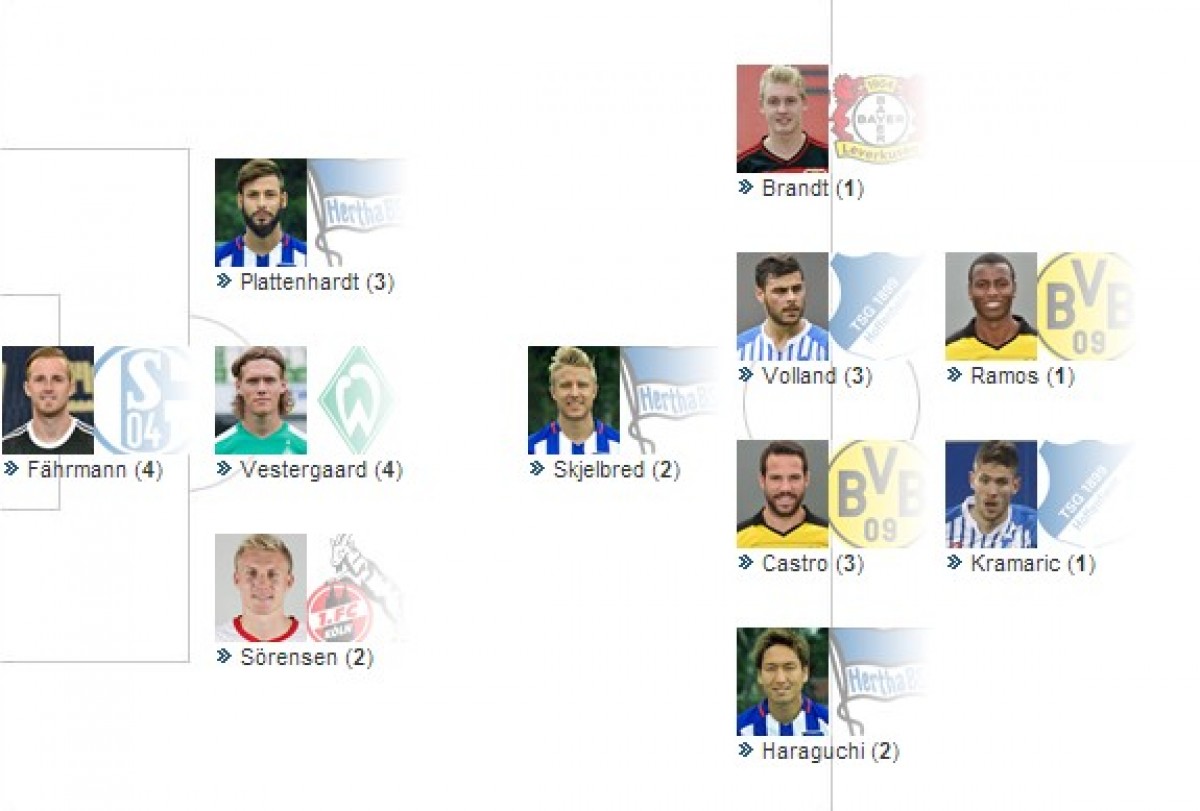 კვირის საუკეთესო თერთმეტეულში ყველაზე მეტი, სამი მოთამაშე ბერლინის “ჰერტადან” მოხვდა, რომელმაც შაბათს საკუთარ მოედანზე “ინგოლშტადტი” დაამარცხა (2:1).