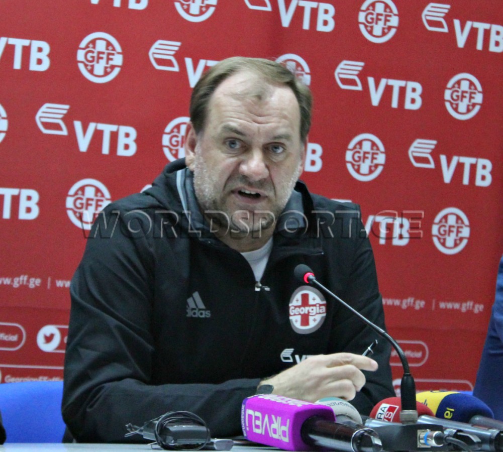 როგორ ათამაშებდა ნაკრებს ესპანეთთან, ხვალ ყაზახეთის ნაცვლად ესპანეთი რომ იყოს მეტოქე: “როცა ესპანეთს ეთამაშები, ნახევარდაცვას განსაკუთრებული ყურადღება უნდა დაუთმო. ბურთის შენარჩუნებას ვეცდებოდით. როგორც ესპანელებს, ასევე ქართველებსაც უყვართ ბურთის ფლობა. ამით ერთმანეთს ჰგვანან. ზოგჯერ ეს კარგია, ზოგჯერ – ცუდიც. ესპანეთთან აუცილებლად დავაყენებდი მჭედლიძეს, რადგან ბურთის დამჭერი თავდამსხმელია, ისე კი, შესაძლოა, სულაც ფორვარდის გარეშე გამეყვანა გუნდი. ისე კი, ესპანელებამდე ჯერ ადრეა, მანამდე ორ თვეზე მეტია დარჩენილი. ჯერ მთლიანად ყაზახეთთან მატჩზე ვფიქრობ”.