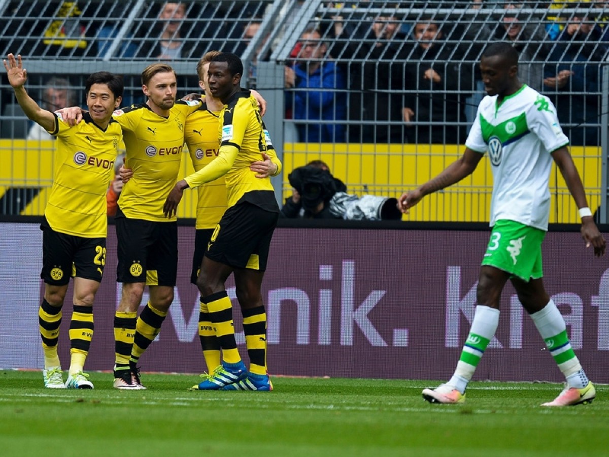 "ბაიერნი" მაინც ჩემპიონი ხდებოდა თუ პარალელურ მატჩში დორტმუნდის "ბორუსია" ვერ მოიგებდა. თუმცა, ტომას ტუხელის შეგირდებმა შარშანდე ვიცე-ჩემპიონ "ვოლფსბურგს" კუდით ქვა ასროლინეს და ძალზე ადვილად ირგუნეს სამი ქულა. ყველაფერი პირველ ათ წუთში გადაწყდა, როდესაც შინჯი კაგავამ და ადრიან რმაოსმა დაამწუხრეს სტუმრები მეორე ნახევარში "დორტმუნდმა" მეტოქის რბევა გააგრელა და კიდევ სამჯერ იხეირა (როისი და ობამეიანგი დუბლი). ერთადერთი რაც "მგლებმა" შეძლეს, ანდრე შურლეს პრესტიჟის გოლი გახლდათ. ახლა, "ბორუსია" "ბაიერნს" 5 ქულით ჩამორჩება და ჩემპიონობის მიზერული მაგრამ შანსი ისევ გააჩნია.