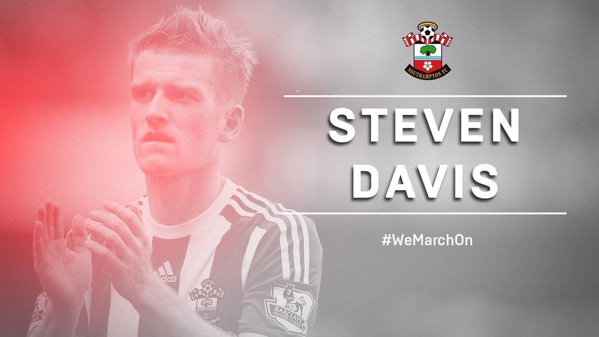 ჩრდილოეთ ირლანდიის ეროვნული ნაკრების ნახევარმცველმა სტივენ დევისმა "საუთჰემპტონთან" კონტრაქტი გაახანგრძლივა. როგორც "წმინდანების" ოფიციალური ვებგვერდი იუწყება, 31 წლის მოთამაშემ კლუბთან ხელშეკრულება 3 წლით გაახანგრძლივა.