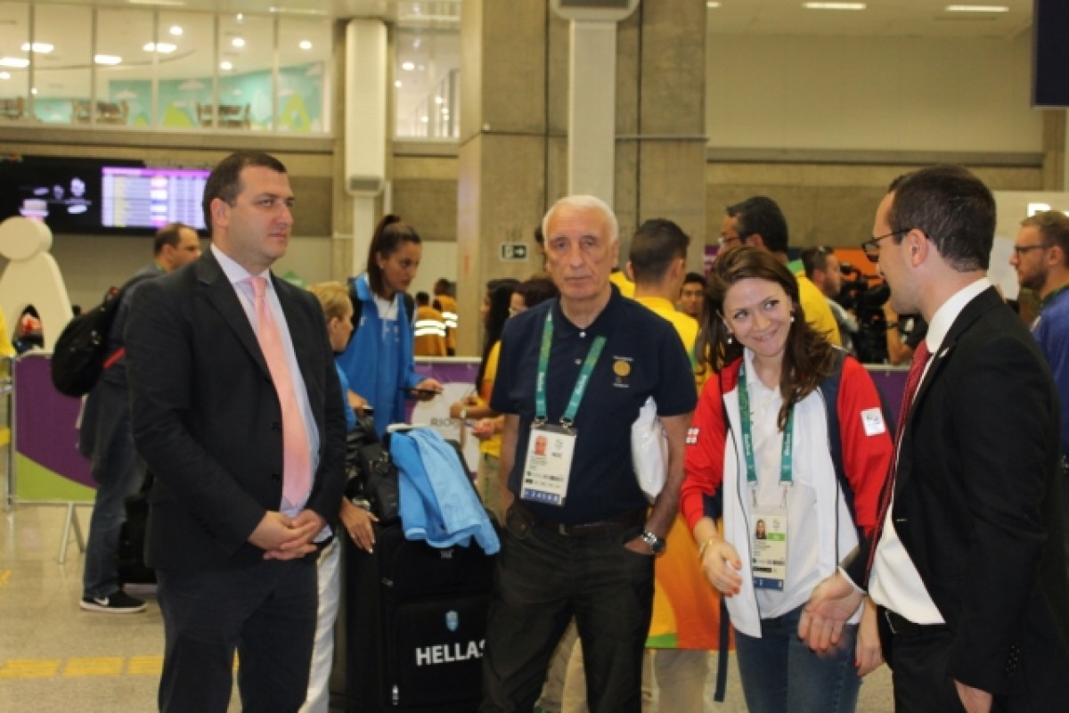 როგორც კი თომას ბახმა რიო-2016-ის საორგანიზაციო კომიტეტის თავმჯდომარესთან კარლოს ნუზმანთან ერთად დატოვა აეროპორტის ჩამოფრენის ზონა, გამოსასვლელში პირველები გამოჩნდნენ ჩვენი დელეგაციის წევრები. საბაჟო, სასაზღვრო და სააკრედიტაციო პროცედურების გავლის შემდეგ, ისინი ოლიმპიურ სოფელში გაემგზავრნენ, რომელიც აეროპორტიდან ერთი საათის სავალზეა. მათ გზაშივე მიიღეს პირველი ინფორმაცია საცხოვრებელში განთავსების, საწვრთნო პროცესში ჩართვის, სხვადასხვა ტექნიკური საკითხების შესახებ.