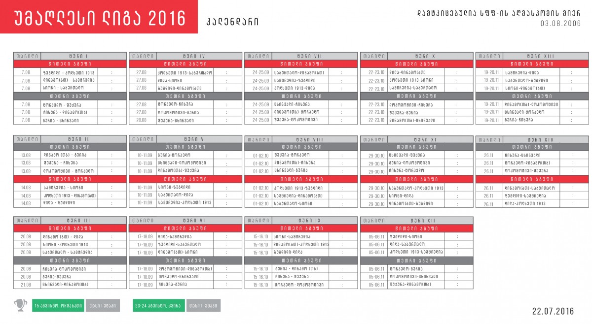უმაღლეს ლიგაში გარდამავალი სეზონი 7 აგვისტოს დაიწყება, პირველი ლიგა კი, 19 აგვისტოს. რაც შეეხება საქართველოს დავით ყიფიანის სახელობის თასის გათამაშებას, ის 15 აგვისტოს აიღებს სტარტს.