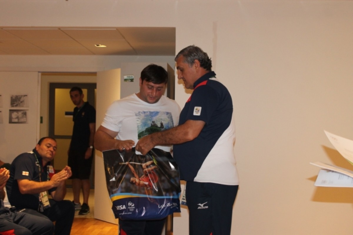რიოში, საქართველოს ოლიმპიური დელეგაციის ოფისში საზეიმო შეხვედრა მოუწყვეს ჩვენს სახელოვან სპორტსმენებს – ოლიმპიურ ჩემპიონს ლაშა ტალახაძეს, ბრინჯაოს მედლის მფლობელებს, ირაკლი თურმანიძეს და შმაგი ბოლქვაძეს. საქართველოს ოლიმპიური კომიტეტის პრეზიდენტმა ლერი ხაბელოვმა მათ დიდი წარმატება მიულოცა და დიპლომები და საჩუქრები გადასცა.
