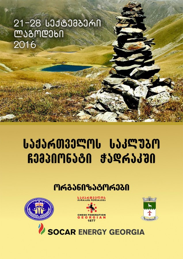 22 სექტემბერს, ლაგოდეხში სტარტს აიღებს საქართველოს საკლუბო პირველობა ჭადრაკში. ჩემპიონატში ქვეყნის 8 რეგიონის გუნდი მონაწილეობს. ასპარეზობა წრიული სისტემით 7 ტურად იმართება შემდეგი დროის კონტროლით: ყოველ პარტიაზე თითოეულ მონაწილეს მიეცემა 90 წუთი 40 სვლაზე, შემდეგ 30 წუთი პარტიის ბოლომდე, ყოველ სვლაზე (პირველი სვლიდან) 30 წამის დამატებით.