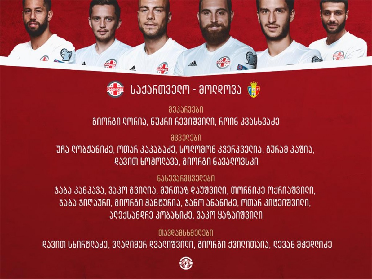 საქართველოს ეროვნული საფეხბურთო ნაკრების მწვრთნელმა ვლადიმირ ვაისმა მოლდოვასთან მსოფლიოს 2018 წლის ჩემპიონატის შესარჩევი ტურნირის მატჩისთვის საქართველოს ნაკრების შემადგენლობა დაასახელა.