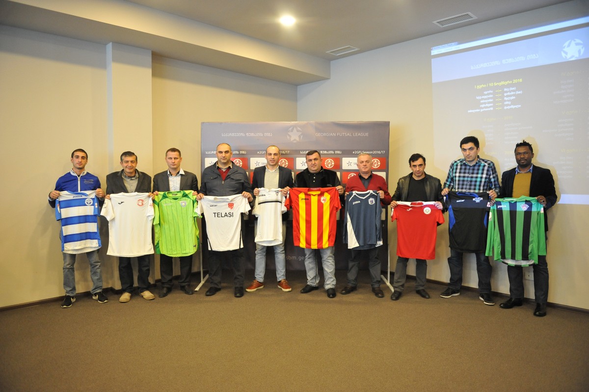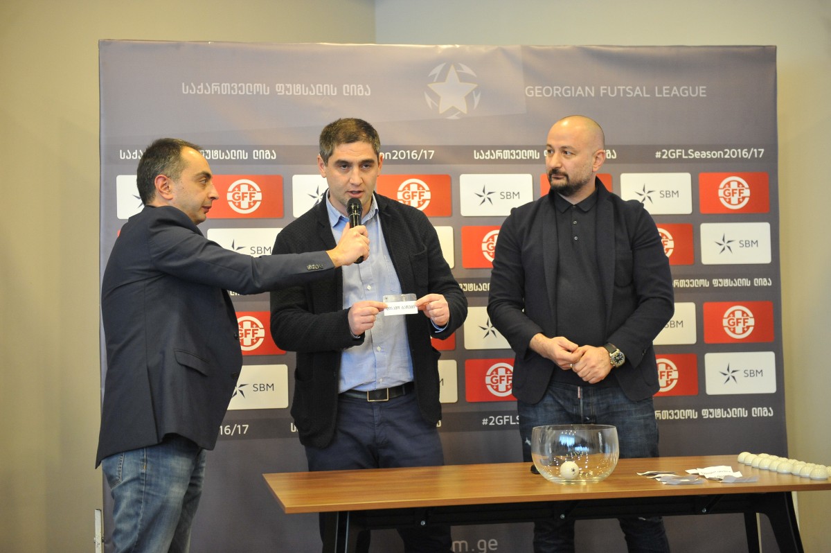 3 ნოემბერს, „ახალ თბილისში“ მდებარე სასტუმრო „მოხალისეს“ საპრეზენტაციო დარბაზში, საქართველოს ფეხბურთის ფედერაციის და სპორტული სააგენტო SBM-ის ორგანიზებით, საქართველოს ფუტსალის ლიგის 2016/17 წ.წ სეზონის პრეზენტაცია, გუნდების წარდგენა და ჩემპიონატის წილისყრა გაიმართა, რომელსაც სფფ-ს პრეზიდენტი ლევან კობიაშვილი, გენერალური მდივანი დავით მუჯირი და სპორტული სააგენტო SBM-ის დირექტორი ზაალ ჩიტალაძე ესწრებოდნენ.