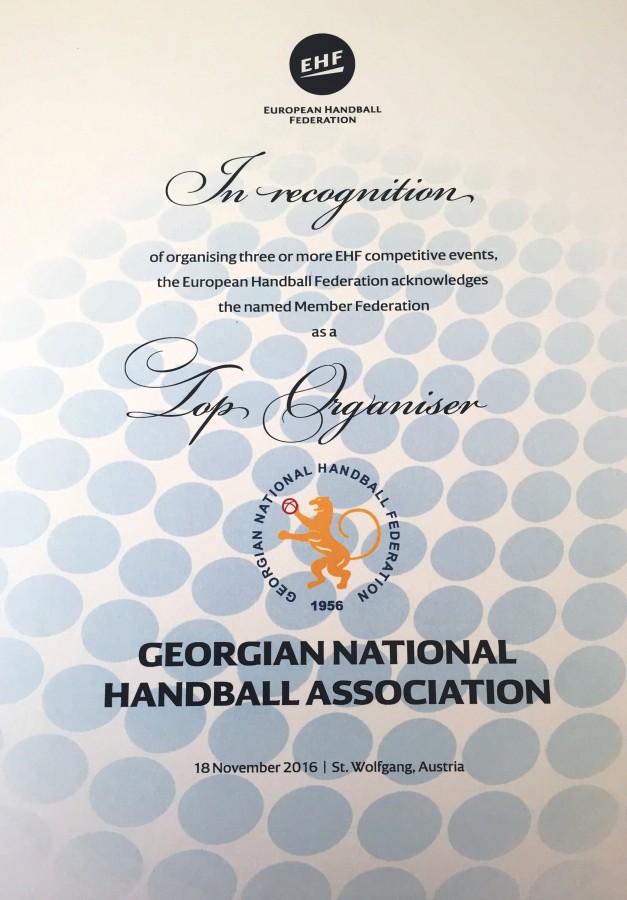 შეჯიბრებების საუკეთესო ორგანიზატორებად აღიარეს: პლაჟის ხელბურთში პორტუგალიის ფედერაცია, ხოლო კლასიკურ ხელბურთში - საქართველოს ხელბურთის ეროვნული ფედერაცია, ვინც უმაღლეს დონეზე გამართა ევროპის ახალგაზრდობის ოლიმპიური ფესტივალი 2015 წელს, ქალთა მსოფლიო თასის გათამაშება და ევროპის თვრამეტწლადელთა ჩემპიონატი 2016 წელს სპეციალური დიპლომი გადმოგვცეს პრეზიდენტმა ჟან ბრიომ და საშეჯიბრო კომისიის თავმჯდომარემ, ლეოპოლდ კალინმა.