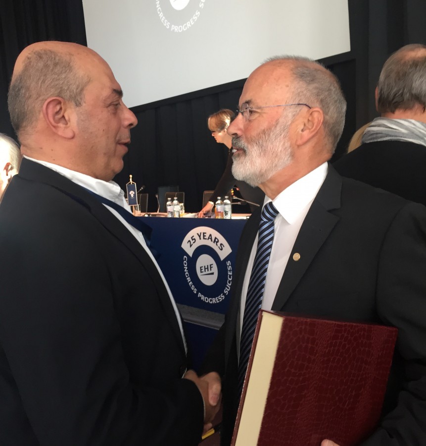 გვესაუბრება ზურაბ კაკაბაძე: -კონგრესი დაემთხვა ევროპის ხელბურთის ფედერაციის (EHF) 25 წლისთავს და ეს თარიღი საგანგებოდ აღინიშნა კიდეც. კონგრესმა აირჩია ახალი პრეზიდენტი, ავსტრიელი მიხაელ ვიდერერი, რომელიც დაარსების დღიდან ორგანიზაციის გენერალურ მდივნად მუშაობდა, ახლა კი ხელბურთის ევროპული ფედერაციის ისტორიაში რიგით მეოთხე პრეზიდენტი იქნება. მის წინამორბედს, ფრანგ ჟან ბრიოს, კანდიდატურის წამოყენების უფლება აღარ ჰქონდა, რადგანაც მას პრეზიდენტობისთვის ასაკობრივი ცენზი შეეხო.