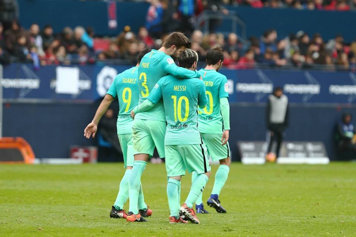 “ბარსელონა” კი, გასვლაზე ბოლო ადგილოსან “ოსასუნას” დაუპირისპირდა და “რეალის” მსგავსად, პირველი ტაიმი უგოლოდ ითამაშა. “ბლაუგრანამ” მეტოქის გატეხვა 59-ე წუთზე მოახერხა: სტუმრებმა ძალიან ლამაზი კომბინაცია განახორციელეს და ლუის სუარესს ცარიელ კარში შეაგორებინეს ბურთი. 72-ე წუთზე მესიმ ორამდე გაზარდა სხვაობა, ხოლო მსაჯის მიერ მეორე დამატებულ წუთზე არგენტინელმა შემტევმა რამდენიმე მეტოქე მოატყუა, ულამაზესი გოლი გაიტანა და ტაბლოზე საბოლოო ანგარიში ასახა – 0:3.
