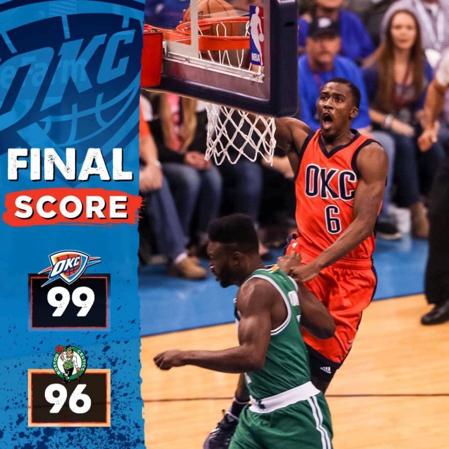 “ოკლაჰომამ” შინ “ბოსტონი” 99:96 დაამარცხა. მატჩში გადამწყვეტი ბოლო წუთები გამოდგა, სადაც რასელ უესტბრუკმა და მისმა თანაგუნდელებმა უკეთ ითამაშეს. რასელმა გუნდს 37 ქულა 12 მოხსნა და 6 პასი შესძინა, უესტბრუკს აქამდე ზედიზედ შვიდი სამმაგი დუბლი ჰქონდა გაკეთებული და მერვემდე ცოტა დააკლდა. მატჩის შემდეგ რასელს ჟურნალისტებმა ამ თემას ჰკითხეს, რაზეც უესტბრუკმა უპასუხა, რომ მთავარია გუნდმა მოიგოს და მისი პირადი მიღწევები არაა ამ შემთხვევაში მნიშვნელოვანი.