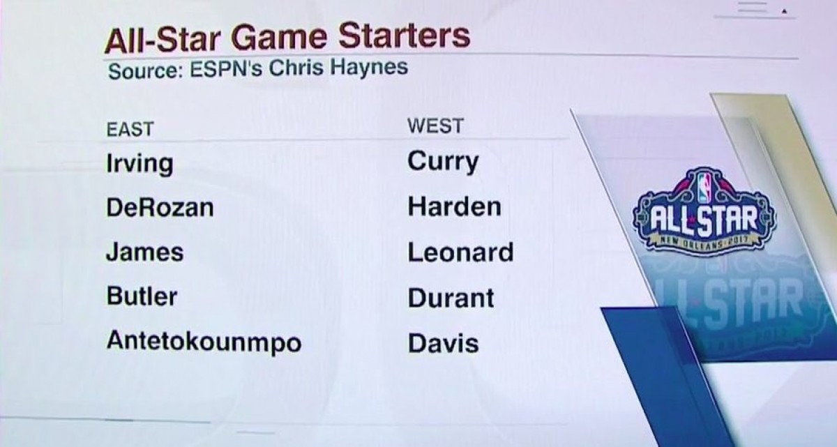 აღსანიშნავია, რომ სასტარტო ხუთეულს მიღმა დარჩა „ოკლაჰომა სიტის“ ვარსკვლავი რასელ უესტბრუკი, რომელიც ბრწყინაველ სეზონს ატარებს. მას წელს 21 სამმაგი დუბლი აქვს შესრულებული, ხოლო საშუალოდ თამაშში დიდებული მაჩვენებელი გააჩნია: 30.6 ქულა, 10.4 პასი და 10.6 მოხსნა.