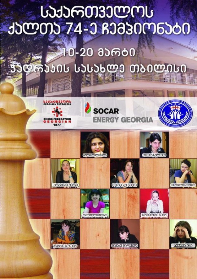 საქართველოს მოჭადრაკე ქალთა 74-ე ეროვნული ჩემპიონატის პირველმა ტურმა სენსაციებისა და ყაიმების გარეშე ჩაიარა. ხუთი პარტიიდად ოთხი თეთრებისა და ერთი შავების გამარჯვებით დასრულდა.