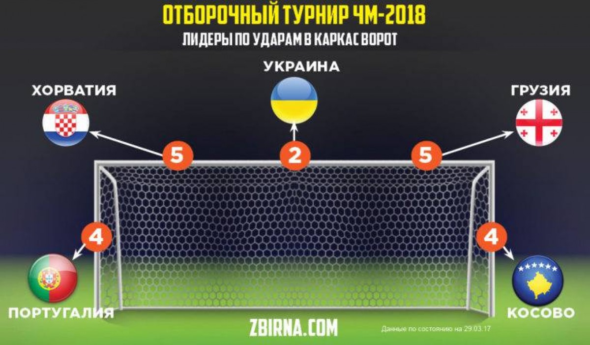 მუნდიალ-2018-ის შესარჩევ ციკლში ყველაზე ხშირად ძელს მოარტყეს ბურთი საქართველოსა და ხორვატიის ნაკრების ფეხბურთელებმა: ხუთ-ხუთჯერ.