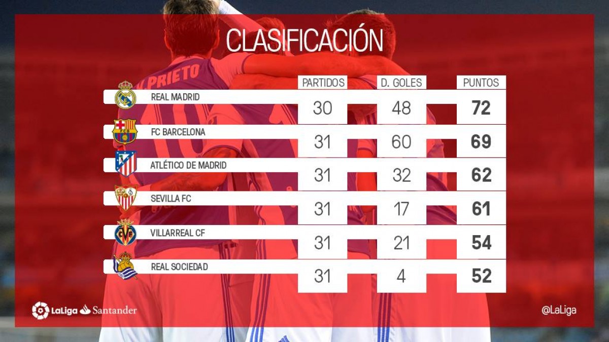 “სოსიედადმა” 52 ქულა დააგროვა და მე-6 ადგილი დაიბრუნა, ხოლო “ხიხონი” 22 ქულით მე-18 საფეხურს იკავებს და მის წინ მყოფ “ლეგანესს” 5 ქულით ჩამორჩება.